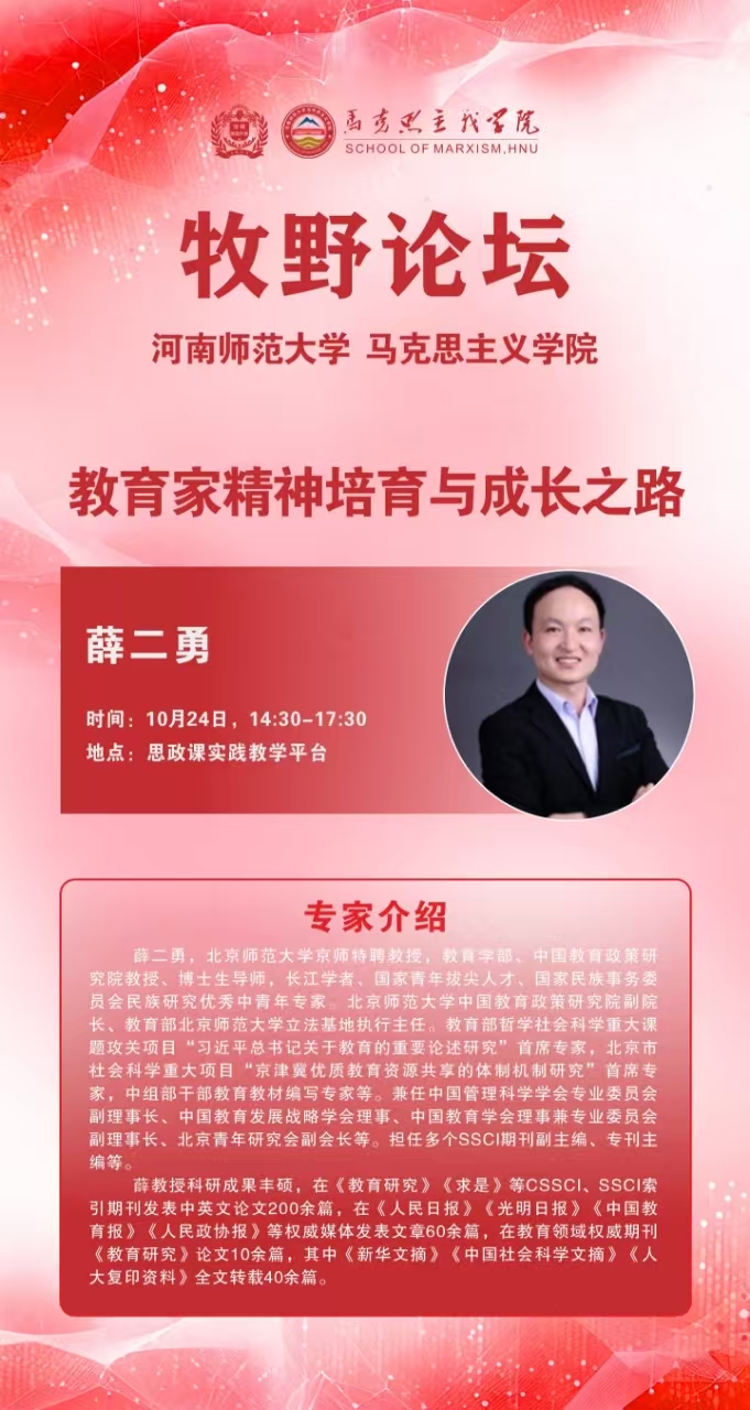 马克思主义牧野论坛 北京师范大学薛二勇教授讲学通知