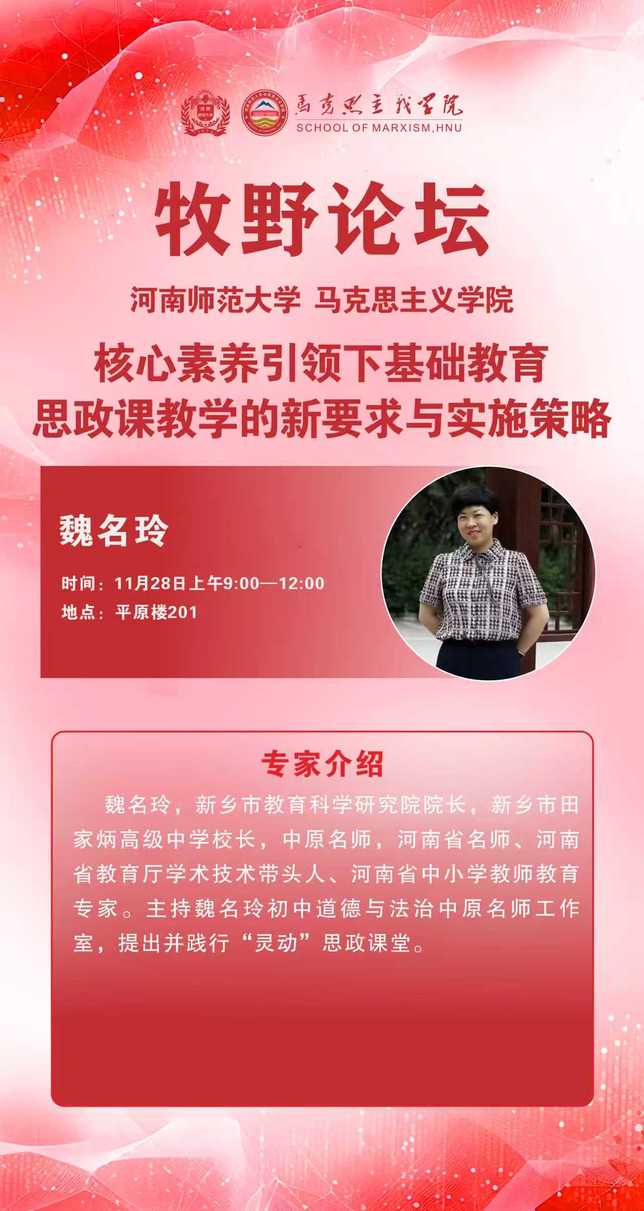 马克思主义牧野论坛 新乡市教育科学研究院院长魏名玲讲学通知