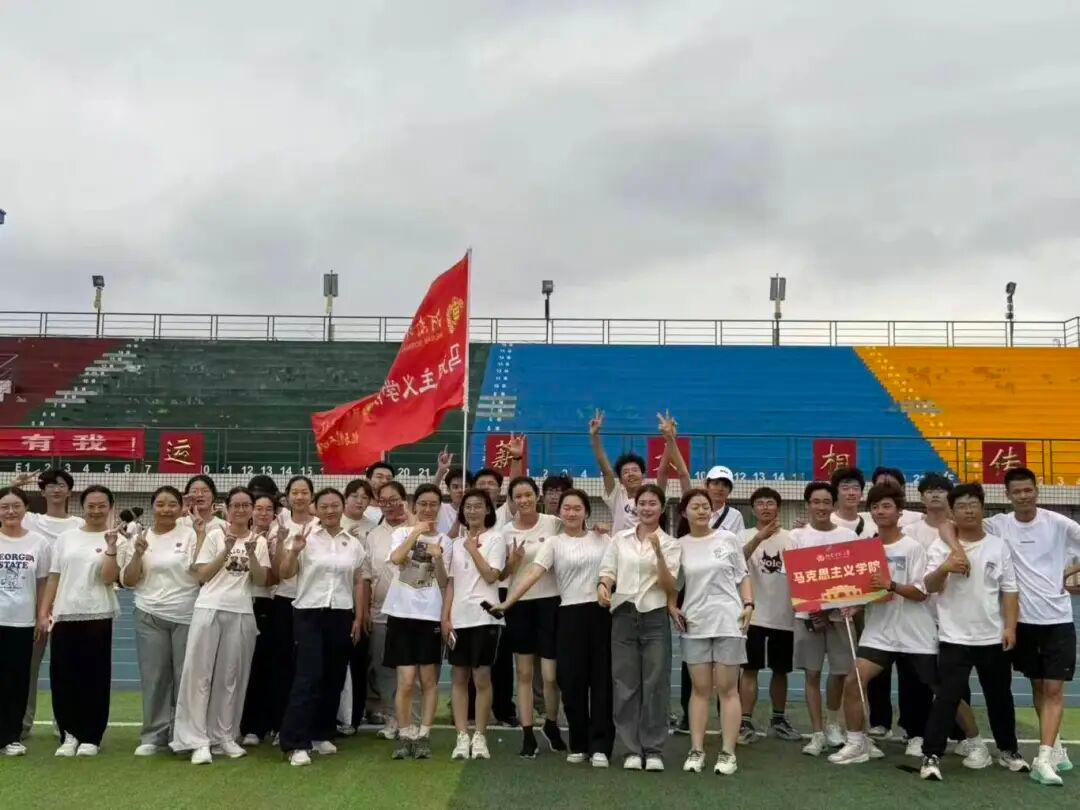 “明理求是,守正创新,以梦为马,不负韶华!”嘹亮口号响彻赛场,新生们精神抖擞、步伐铿锵,在跑道上尽情挥洒青春汗水。马克思主义学院的旗帜在队伍中迎风招展,成为一抹格外醒目的亮色,为赛场更添蓬勃朝气。冲过终点线的瞬间,新生们相互击掌庆祝,脸上满是胜利的喜悦。活动尾声,全体师生合影留念,用镜头定格下这活力满满的瞬间。