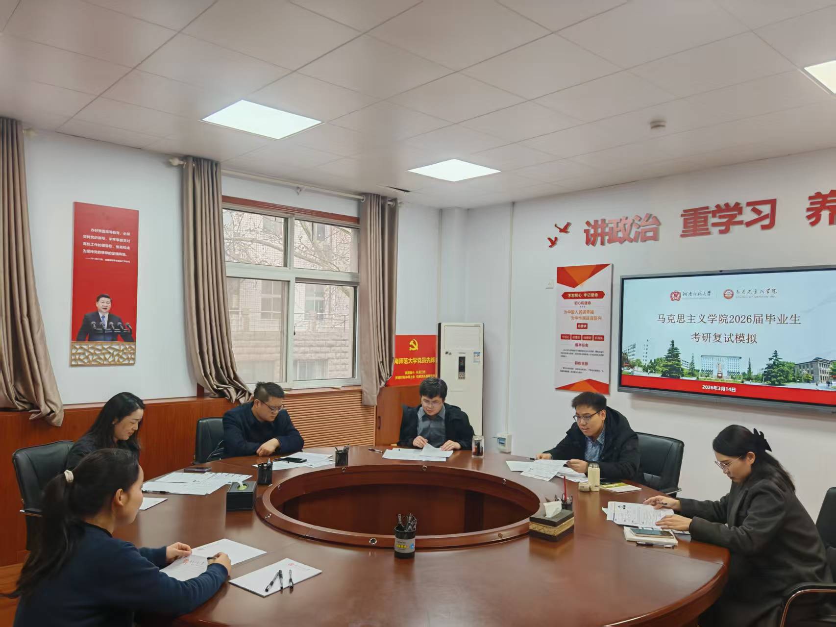 3月14日上午,马克思主义学院在平原楼精心组织2026届考研复试模拟暨专题指导交流活动。活动按考生报考高校所在区域分为四个小组,分别在101、117、201、221会议室设置模拟面试考场,学院19名领导教师共同参与,为报考外校的过线考生提供实战演练和专业辅导。