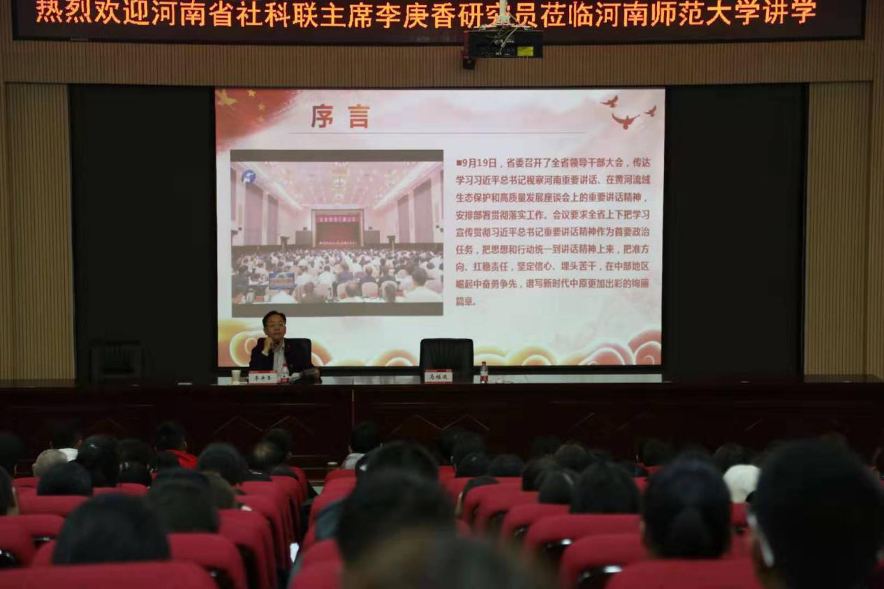 李庚香研究员围绕“如何学习领会和贯彻落实习近平总书记考察调研河南时重要讲话精神”作了一个很好的学术报告,分别从深刻领会习近平总书记关于加强黄河流域生态保护和高质量发展的重大要求,抓住机遇把黄河保护治理好;深刻领会习近平总书记关于河南经济社会发展的重大要求,在中部地区崛起中奋勇争先;弘扬“大别山”精神,切实承担好牢记初心使命、传承红色基因的政治责任和历史责任;聚焦黄河文明、中原文化,打造好河南的文化高地;牢牢把握习近平总书记重要讲话精神的实践要求,抢抓机遇推动各项工作上台阶上水平等五个方面,对习近平总书记考察调研河南时重要讲话精神进行了系统地、深刻地解读,既有理论深度,又不失形象生动。