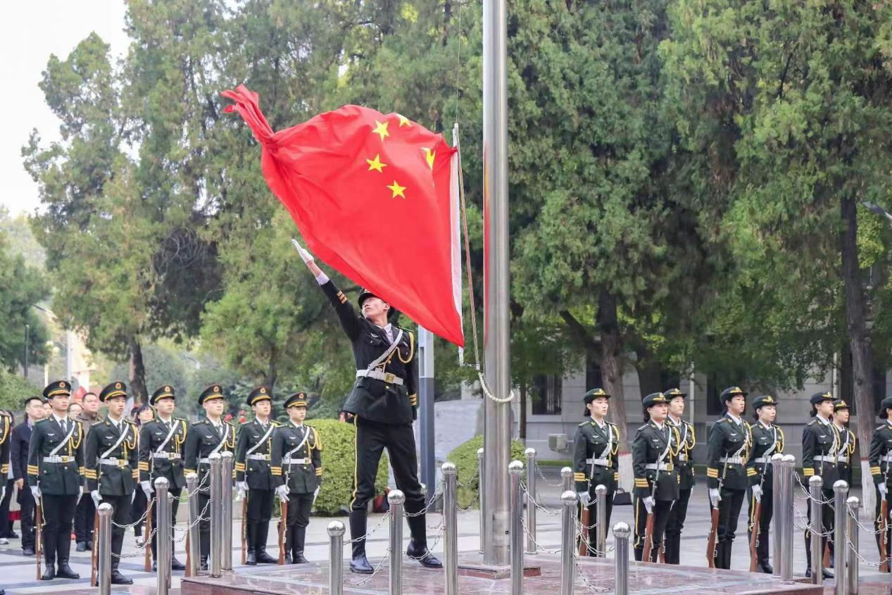 为庆祝中华人民共和国成立73周年,喜迎党的二十大胜利召开,10月8日,马克思主义学院在国旗广场隆升国旗仪式暨“国旗下的思政课”主题活动。党委学工部相关负责人、马克思主义学院班子全体成员、全体专兼职辅导员以及800余名本硕博学生参加升旗仪式。仪式由学院党委副书记王秀杰主持。