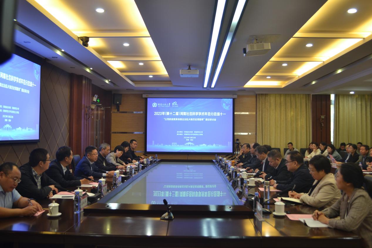 10月22日上午,由河南省社科联、河南师范大学主办,河南师范大学马克思主义学院承办的2023年(第十二届)河南社会科学学术年会分会场之十一“以党的自我革命跳出治乱兴衰历史周期律”研讨会在河南师范大学召开。河南师范大学党委副书记马治军、河南省社科联兼职副主席、河南科技大学马克思主义学院院长刘振江、河南省社科联办公室主任、学会处处长宋淑芳出席会议。