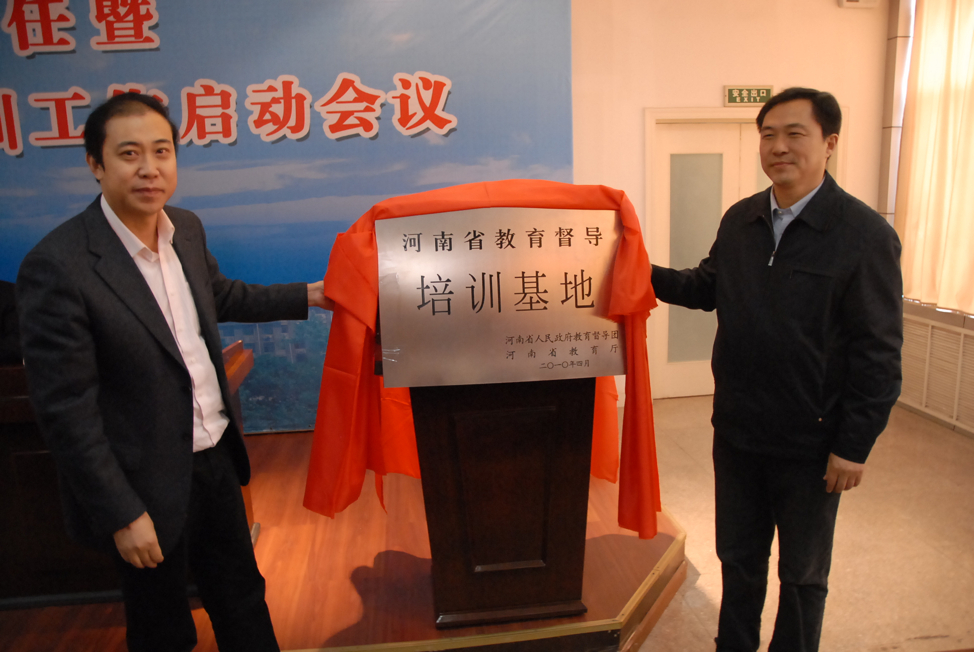 在激昂奋进的音乐声中,何秀超主任、张亚伟书记共同为河南省教育督导培训基地揭牌,并与张健巡视员共同触摸了“教育督导培训启动式”启动球。