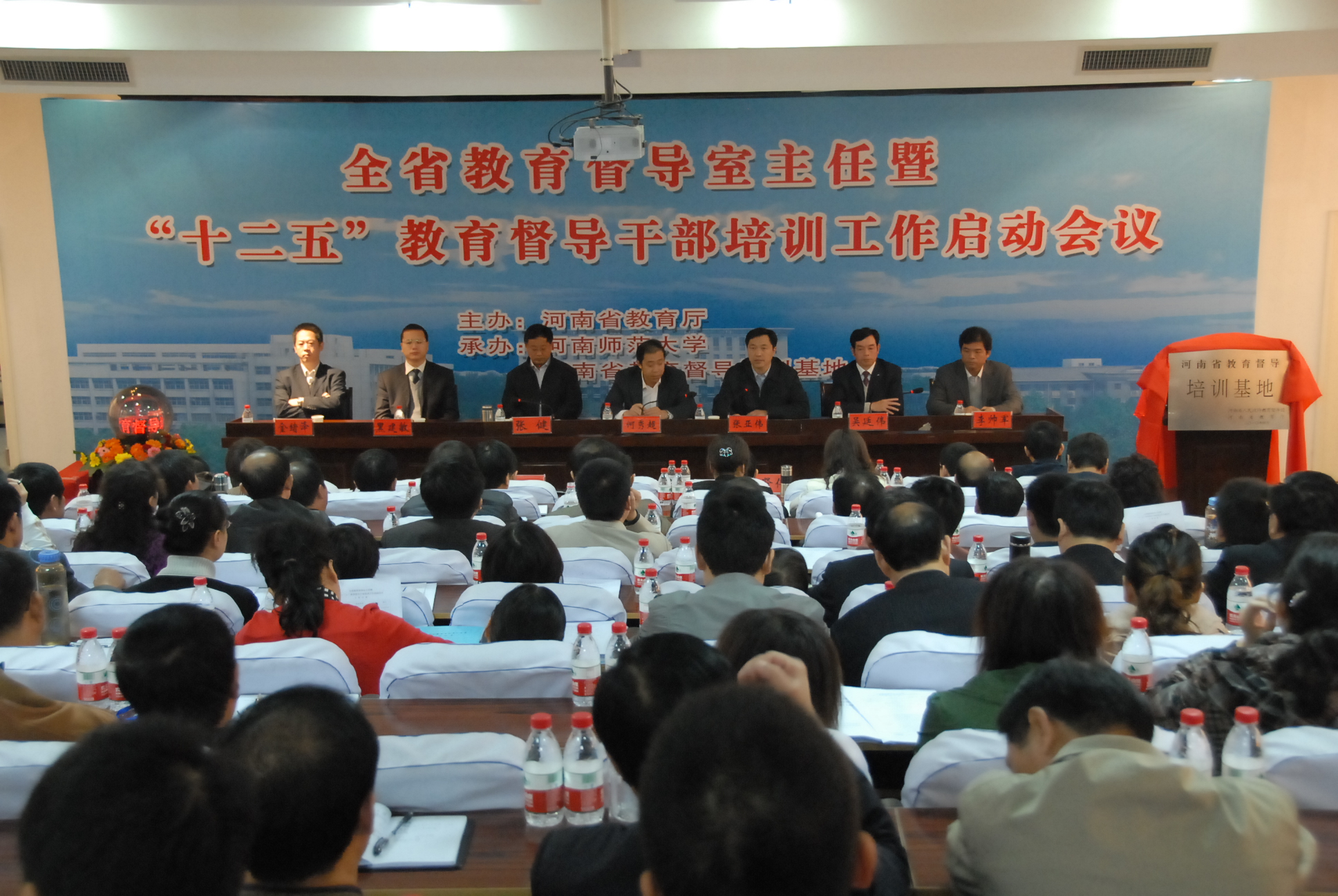 10月23日上午9:00,2010年全省教育督导室主任暨“十二五”教育督导干部培训工作启动会议在我校物理南楼学术报告厅隆重召开。国家教育督导团办公室主任何秀超,河南省委高校工委专职副书记、我校党委书记张亚伟,河南省教育厅党组成员、巡视员张健,省政府教育督导团副总督学吴廷伟,我校副校长黑建敏,省教育厅督导室副主任潘贤伟、李明,省教育厅督导室调研员张青川,省教育厅督导室主任科员庞晓冬,我院院长李帅军,院党委书记金绪泽等领导与来自全省教育督导战线上的200多名代表共同参加了大会。本次会议由河南省教育厅主办,教育科学学院、河南省教育督导培训基地协办。启动仪式由省教育厅巡视员张健主持。