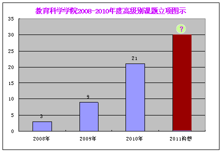 2010年教育科学学院在省部级以上课题立项所取得的成就告诉我们,学院有效组织和积极引导是成功立项的保障,全体教师积极申报和科学论证是成功立项的关键。在全院上下的共同努力下,教育科学学院的教育科研工作已打开了新的局面,迈上快速发展的道路。