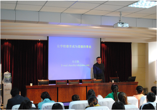 赵志毅教授从教育方针演变历程入手,分析了学校德育目标、德育内容、德育方法等方面存在的问题。随后,赵教授利用通俗易懂的小故事向同学们揭示了为师者应当有高尚的追求,而学校德育的基本任务是培养合格公民。最后,赵教授借助《一个教师的启示》的课件与同学们进行愉快的互动,再次明确德育在学校教育的重要位置。