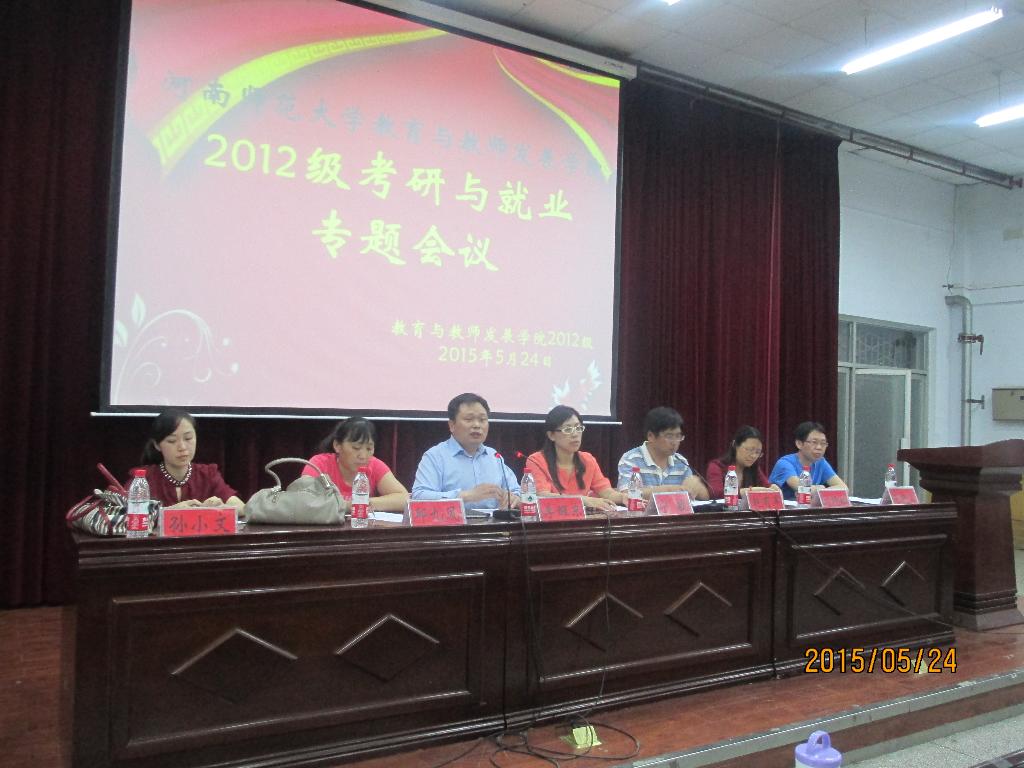 会议伊始,李院长就我院历年来各专业考研的基本情况、政策要求以及同学们如何做好考研准备工作等做了简要介绍。随后,宁敏老师从就业形势、形式、政策等三个方面进行分析,并向详细的讲解推免研究生、硕士计划、西部计划等国家政策的基本情况,赢得同学们的阵阵掌声。紧接着,赵书记等老师就同学们提出的问题一一解答,为同学们指点迷津。他指出,同学们应该立足现实、结合实际,准确进行自我定位,慎重规划自己的发展道路始终如一、坚持不懈,努力为梦想奋斗。最后,2011级王聪毅、李锦同学分别用亲身经历,以面试技巧、工作协调等方面为切入点向大家热情传授就业和考研的经验,并勉励大家要珍惜美好青春,把握现在,利用一切机会提高专业能力,为以后的道路做足准备。同学们纷纷表示收获颇多,活动在一片温馨和谐的气氛中落下帷幕。