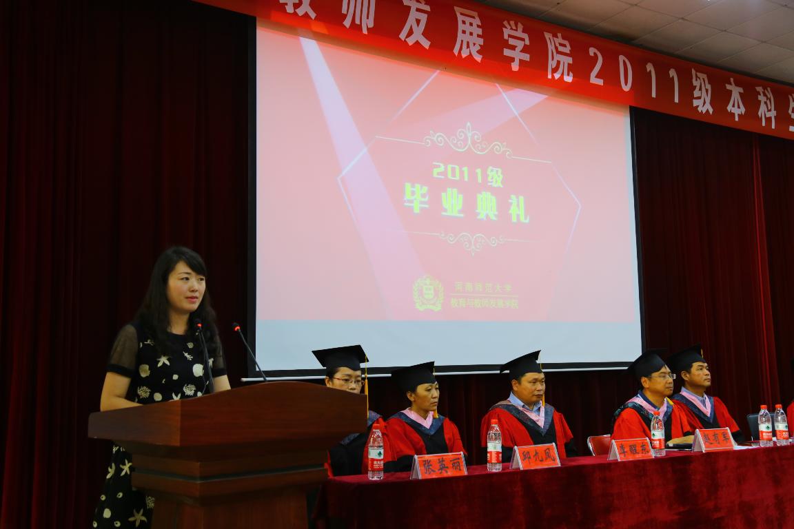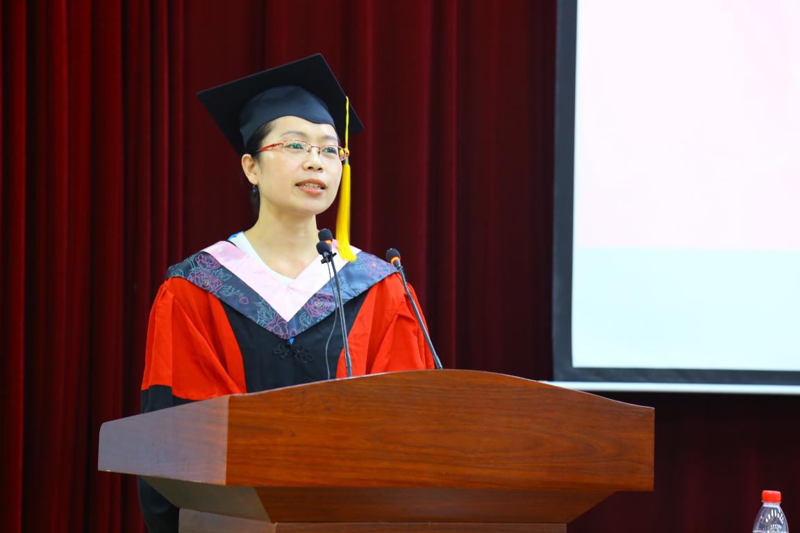 教师代表张英丽博士在发言中对毕业生提出了殷切期望:要做善良平和之人、做最好的自己;要勤于、善于学习;要敢于拥有梦想、勇于实现梦想。