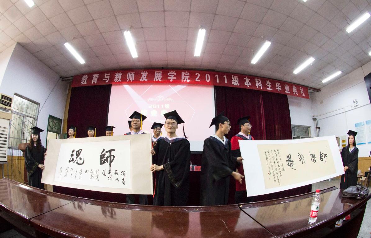 辅导员冀虹飞老师,毕业生代表王亚清分别发言,表达了老师对学海泊岸、职路扬鞭的毕业生的美好期许,毕业生对母校及恩师的感激、敬意和即将远行的豪情壮志。2015届毕业生为学院送上两张字画“师魂”、“师恩永志”以作留念。