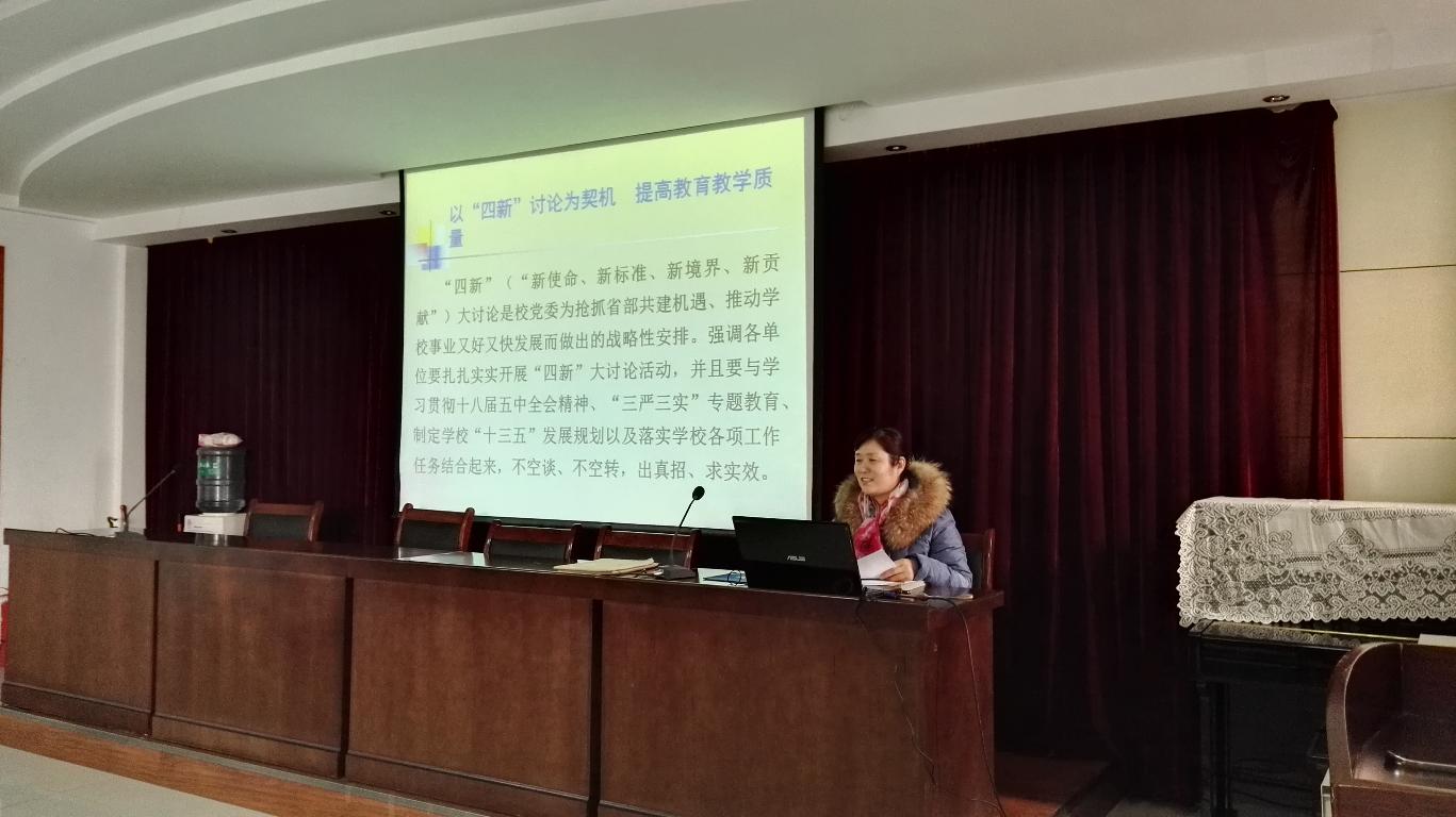 段宝霞副院长专题报告的主题为“以‘四新’讨论为契机,提高教育教学质量”,结合教学管理工作,对教学工作的授课、命题及评卷等各个环节的具体要求做了详尽的说明,并希望全体教师能够不断加强学习,提升教育教学素养,严格执行教育教学各项管理规定,切实提高教育教学质量,为培养合格人才做出自己的贡献。