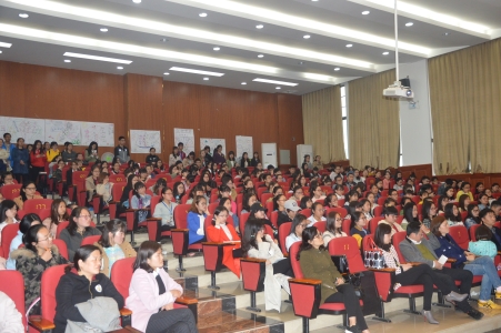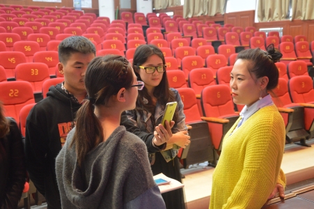 顾少强老师以“世界那么大,我讲给你听”为题,与同学们分享了她的人生经历和感悟。“每一种经历都是好的,经历了都是财富。”顾少强激励同学们积极参与社会实践,大胆竞选各类职位,失败一次两次不算什么,重要的是从失败中寻找教训提升自己的过程,趁年轻抓住机会展示自己、锻炼自己,认清自己。并告诫同学们要注重学习、注重积累。