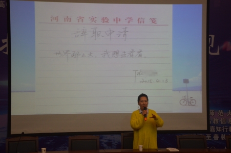 4月8日下午,我校校友、潇洒辞职看世界的美女老师顾少强返回母校,在东教2-302教室为同学们带来了一场极具情怀的演讲培训。“双语”演讲赛承办单位――教育学院全体政工干部、各学院参赛选手及学生代表参加此次培训,培训会由教育学院党委副书记康淑霞主持。