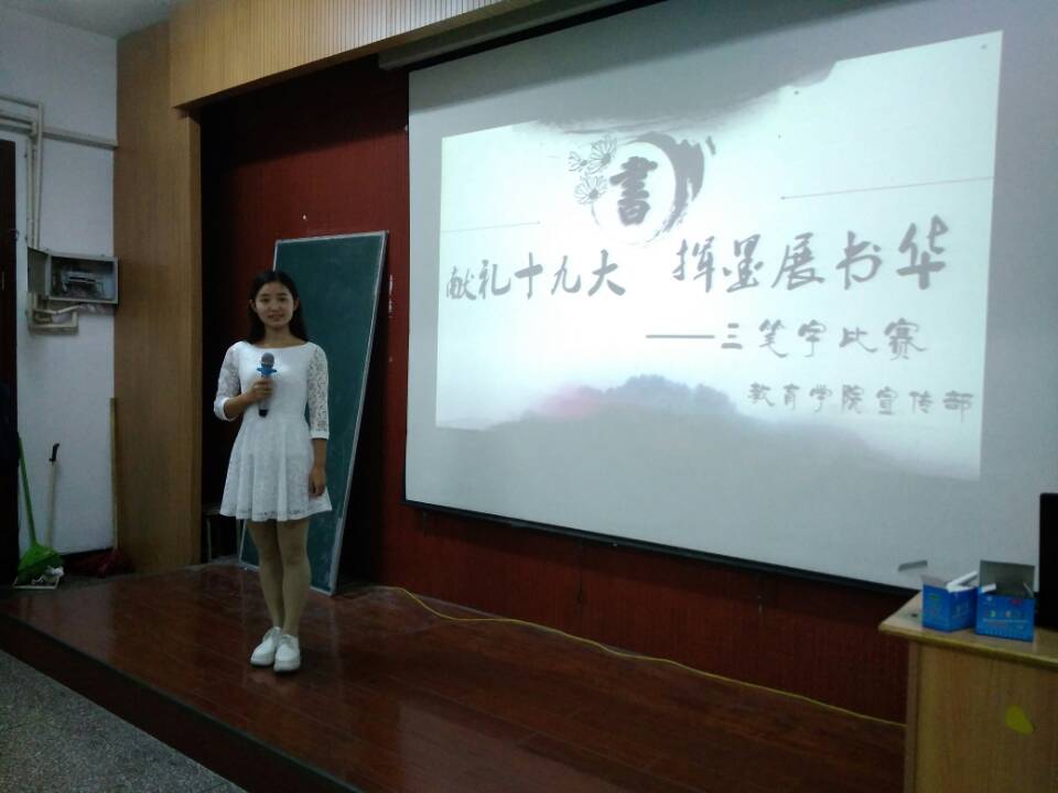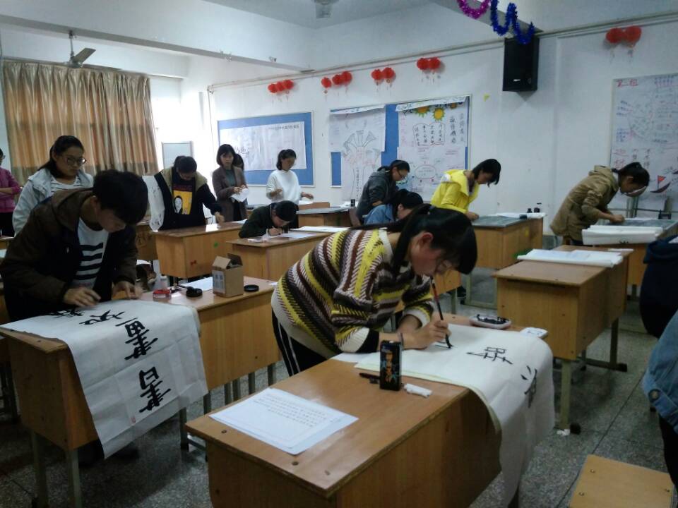 朝书暮画,斯如骑战马。激情笔笔注点划,应知情义无价。为传承优秀传统文化,培养当代大学生“善书明礼、举止雅正”的良好品质,以实际行动向党的十九大献礼,教育学院宣传部于10月25日在田家炳教育书院720教室举办以“献礼十九大,挥墨展风华”为主题的书法比赛,学院2016级、2017级部分学生参与此次比赛。