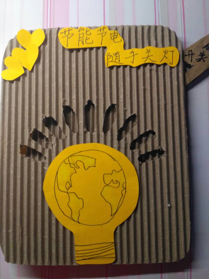 此次活动以宿舍为单位上交作品,经过初步筛选,部分作品将被投放在微信公众号上,经由同学们投票,选出获奖同学。大家的作品制作都十分用心,最让人印象深刻的是岳唤唤同学的作品,她将废弃的快递盒制作成一个简易灯泡和开关,灯泡上面简画一个地球图案,寓意“保护地球”和“节能用电”,旨在倡导大家及时关灯、避免电量浪费,充分体现出她的节约意识。杨琳琳同学的作品也同样创意十足,她用纸张剪贴了一个全球地图,并在地图上画了一个水即将滴尽的水龙头标识,将节约用水的紧急感表现出来,简单大方,深得同学们的喜爱。大家通过制作节约标识,进一步认识到节约的重要性。活动结束后,不少同学将做好的标识贴在宿舍里,时刻提醒大家注意节约。