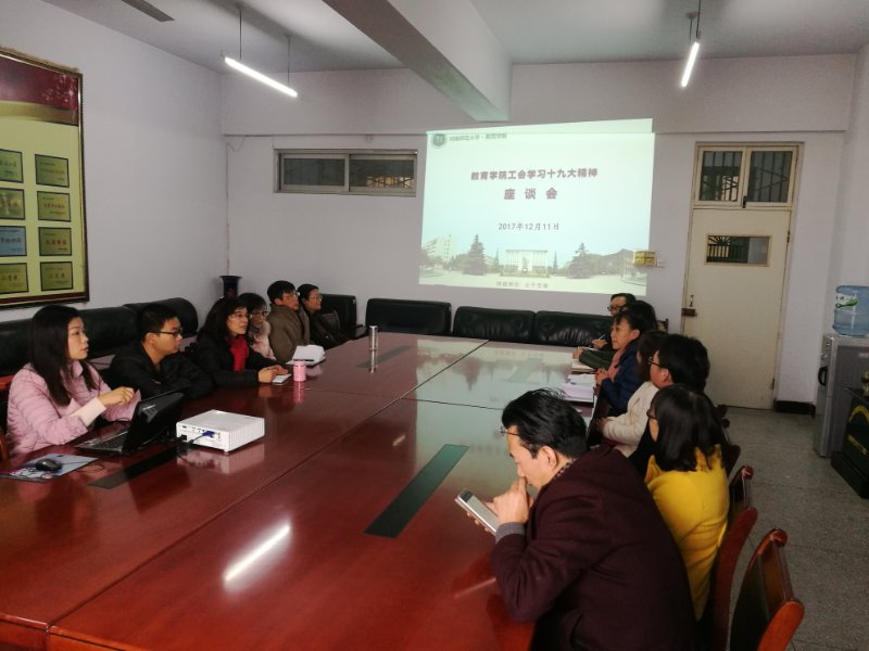 12月11日,教育学院工会干部在田家炳教育书院818会议室举行集中学习十九大精神座谈会。学院党委副书记、工会主席康淑霞主持会议。