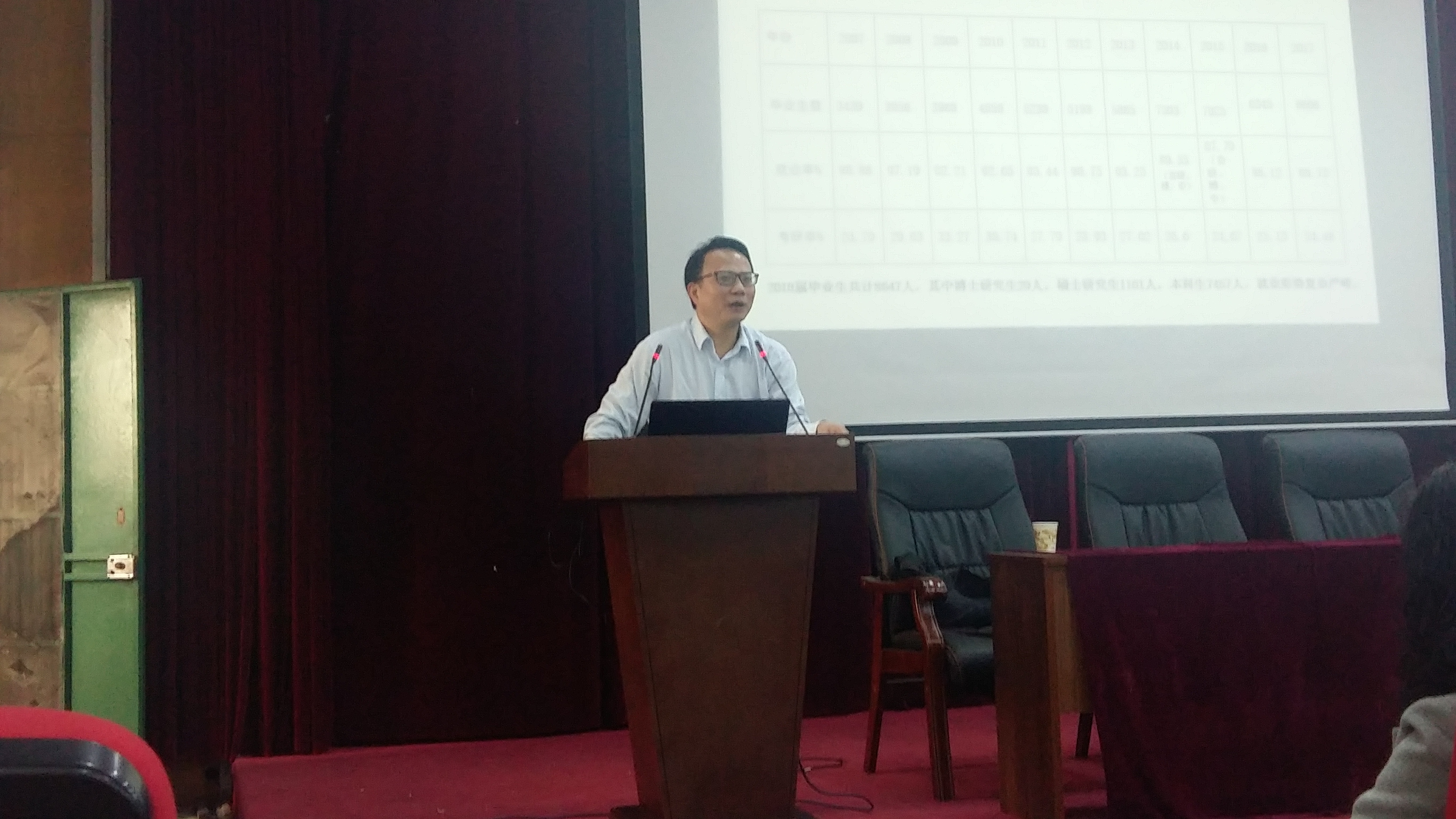3月15日上午,教育学院2018届毕业生就业指导会在万人餐厅三楼多功能报告厅顺利举行。校就业创业指导服务中心副主任冯峰应邀为学生主讲,指导会由院党委副书记康淑霞主持,毕业班辅导员和2018届全体毕业生参加此次活动。