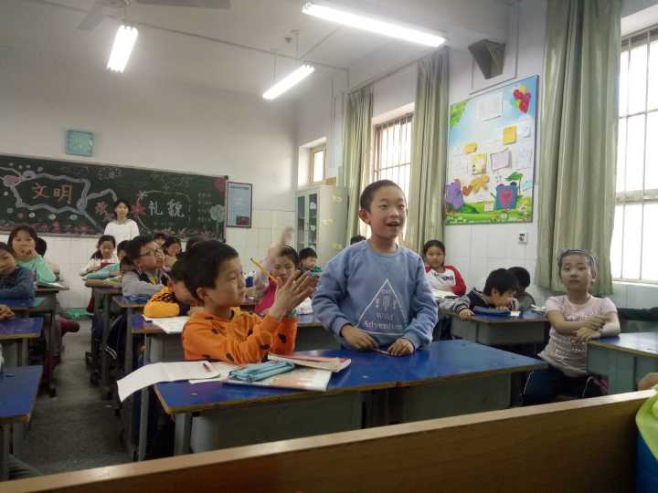 14名志愿者被划分为两组展现不同的课堂内容。课堂上志愿者耐心细致地辅导孩子们的课后作业,并与孩子们亲密交流,了解他们的兴趣爱好。随后,志愿者向孩子们表演精心准备的手指舞《棉花糖》、《红山果》,并在表演完毕后进行教学。孩子们跃跃欲试,纷纷举手要为大家展示。小小的讲台上站满了表演的孩子,志愿者和孩子在游戏教学互动中变得更加亲密。接着,志愿者创新演绎了童话剧《三只小猪》、《小熊拔牙》,三只小猪的机智勇敢和小熊的顽皮可爱让孩子们明白“不要偷懒”、“养成良好卫生习惯”的道理。最后,伴随着《虫儿飞》优美的旋律,公益课堂迎来了放学时间。志愿者带领孩子们安全离开了学校。
