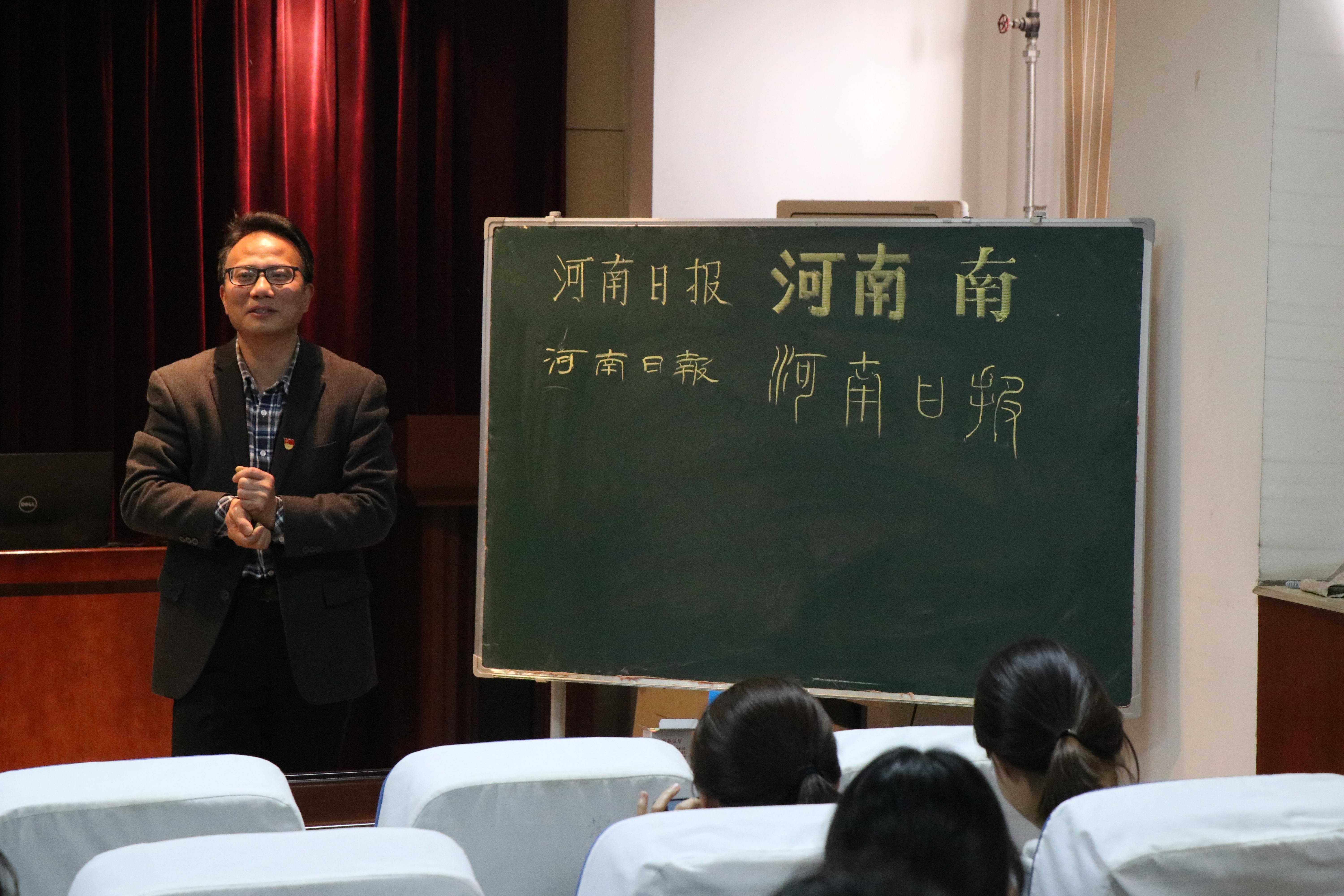 本次培训会分为统一培训和个性化指导两个部分。冯峰结合自身书法学习经历,从书法特点、字体、笔法、结构及留白等方面向大家生动地讲解了“三笔字”书写方法,并以河南日报四字为例,向大家展示楷书、行楷、隶书以及黑体写法。在个性化指导环节,他就学生作品提出了针对性建议:书写要章法布局合理,行列整齐,风格统一。书法是中华优秀传统文化,他鼓励同学们提高自身书法水平,掌握书法技能,传承优秀传统文化。培训结束后,同学们纷纷表示受益匪浅。
