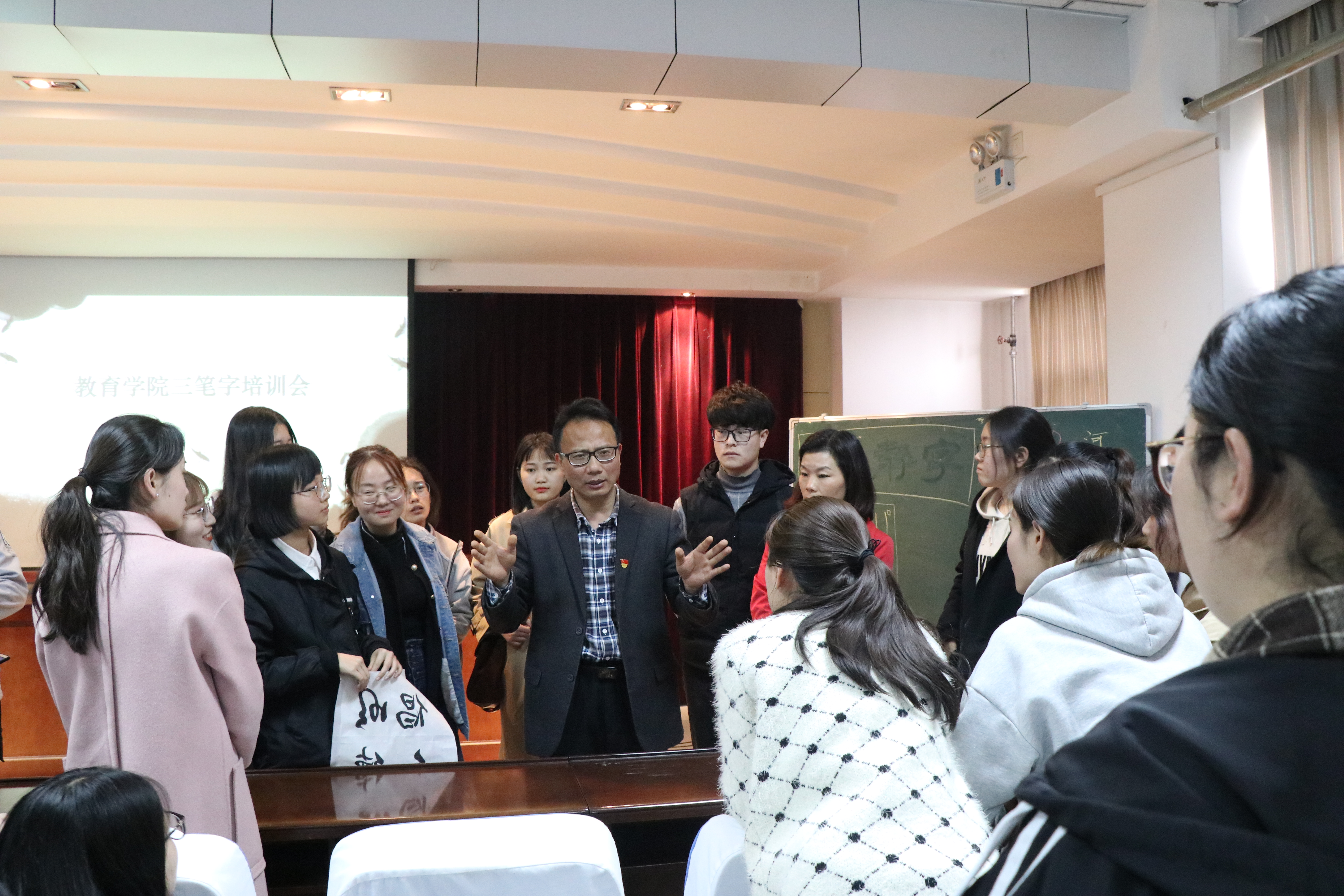 本次书法培训会的举办,为同学们书法练习提供了可行性建议,有利于提高其书法书写能力,从而,丰富其学生校园生活,促进学部文化发展。