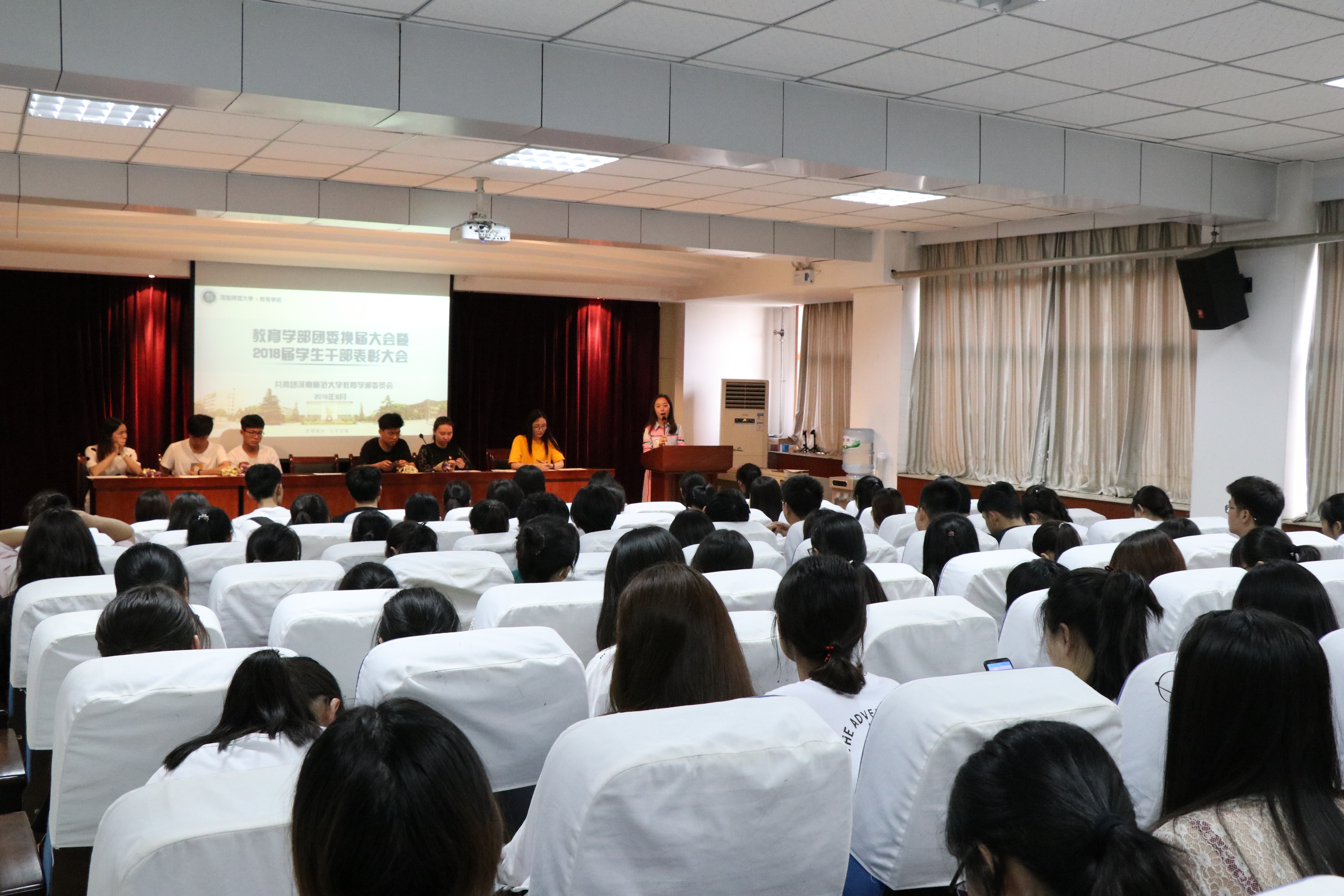 6月6日,教育学部于田家炳教育书院812会议室举办“教育学部团委学生会换届大会暨2018届学生干部表彰大会”,学部团委书记孙小文及团委学生会百余人共同参加此次会议。