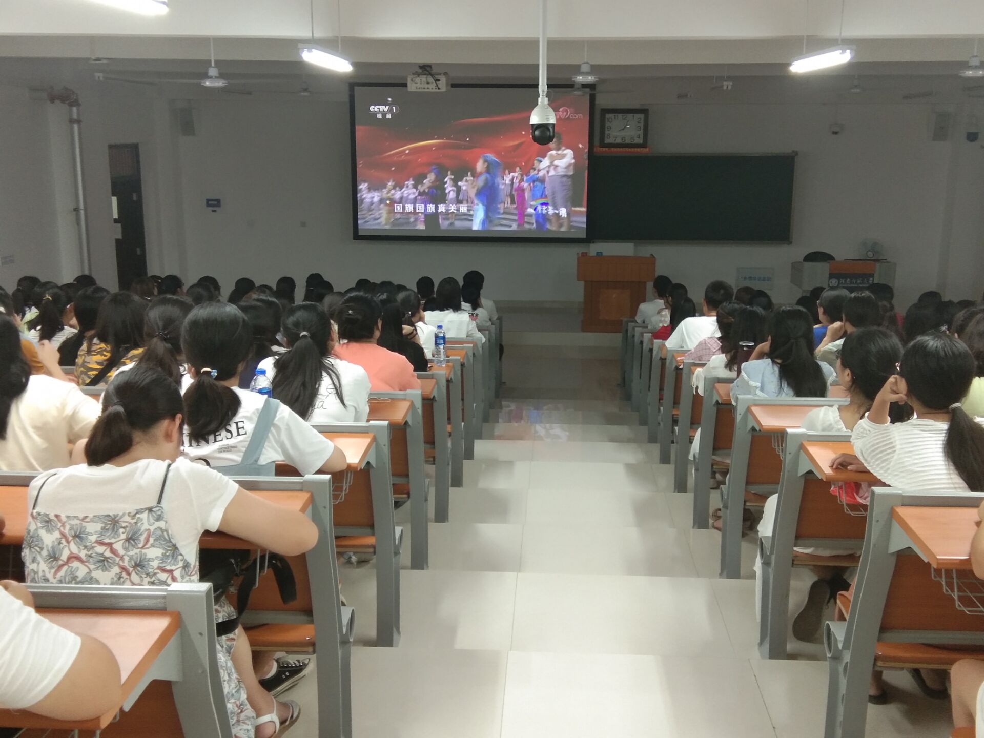 9月1日晚,教育学部组织学生于东区综合楼506教室和509教室集中观看以“五星红旗,我为你自豪”为主题的2019年《开学第一课》专题节目。教育学部党委副书记康淑霞、团委书记孙小文、各年级辅导员及学部300余名同学共同观看此次直播。
