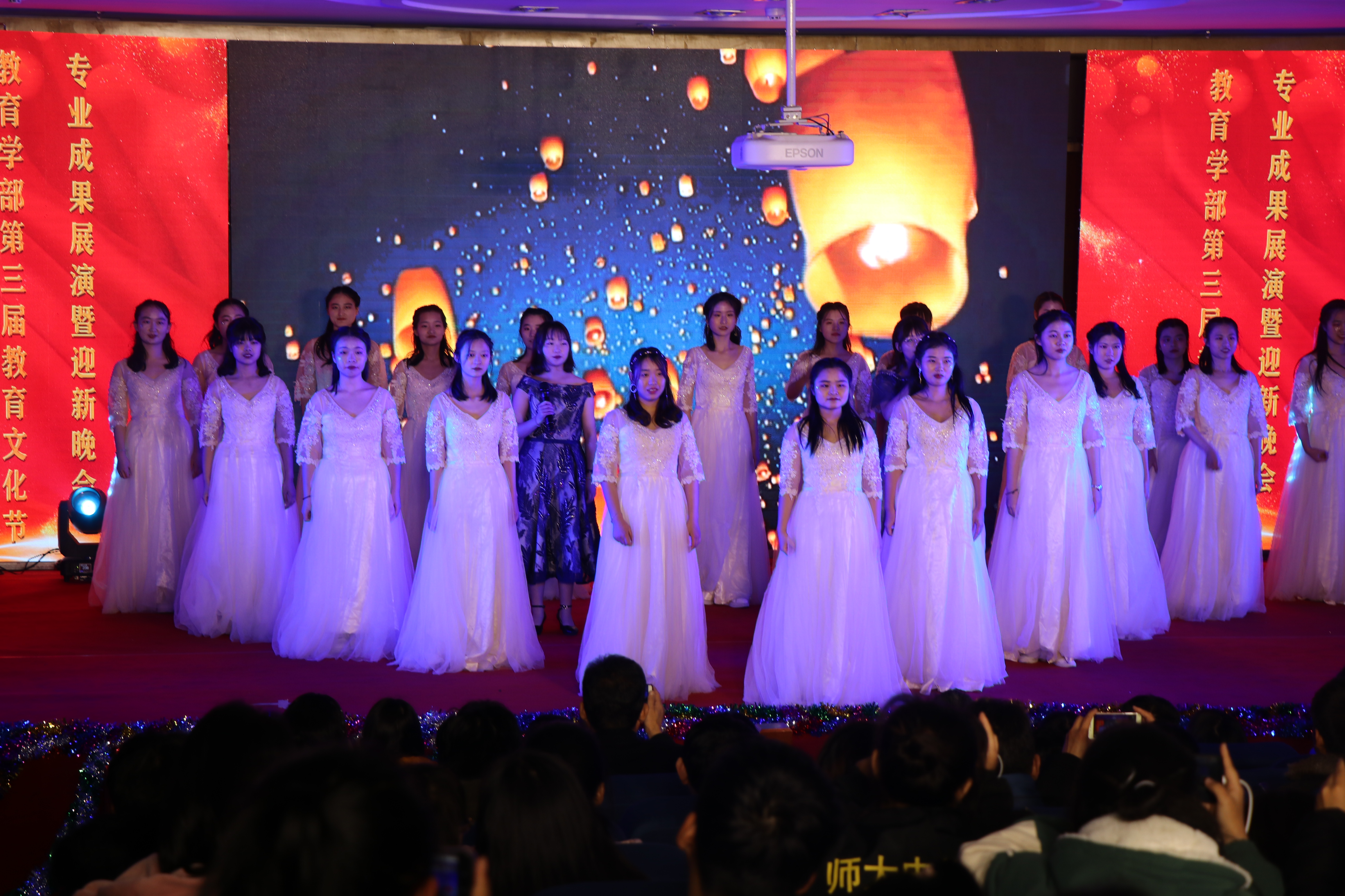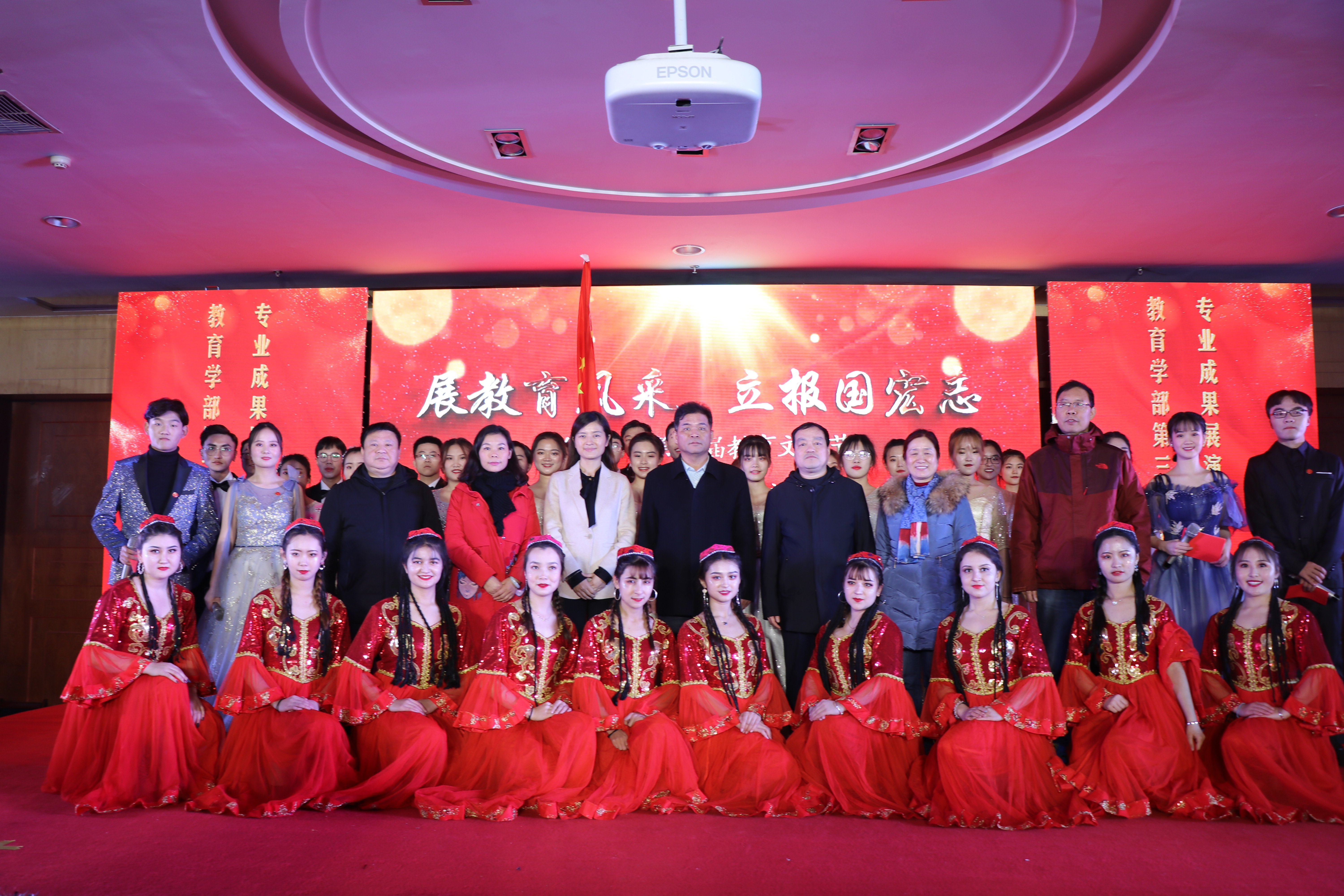 12月20日晚,教育学部第三届教育文化节专业成果展演暨迎新晚会于东区模拟法庭成功举办,学生资助服务中心主任赵红杰,校团委书记孙冬青,就业创业指导服务中心副主任冯峰,学生处副处长寇玉鹏及教育学部领导老师莅临现场,与学部学生代表共同观看展演活动。