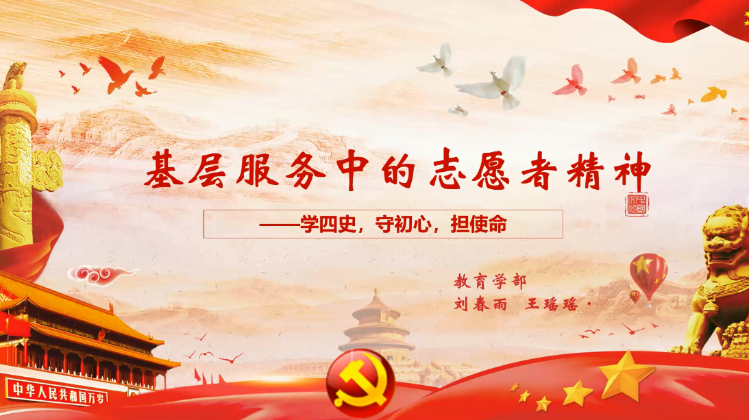 活动中,同学们围绕活动主题“坚定跟党走·奋进新时代”积极准备材料,精心录制,认真创作。其中,2019级教育技术学专业宋佳音同学的作品形式创新,内容新颖,巧妙借鉴了青年大学习的视频模式,独具特色;2018级学前教育专业刘春雨、王瑶瑶团队制作的《学四史,守初心,担使命》视频,主题贴合,内容丰富,引人深思,脱颖而出,获得同学们的赞赏与认可。