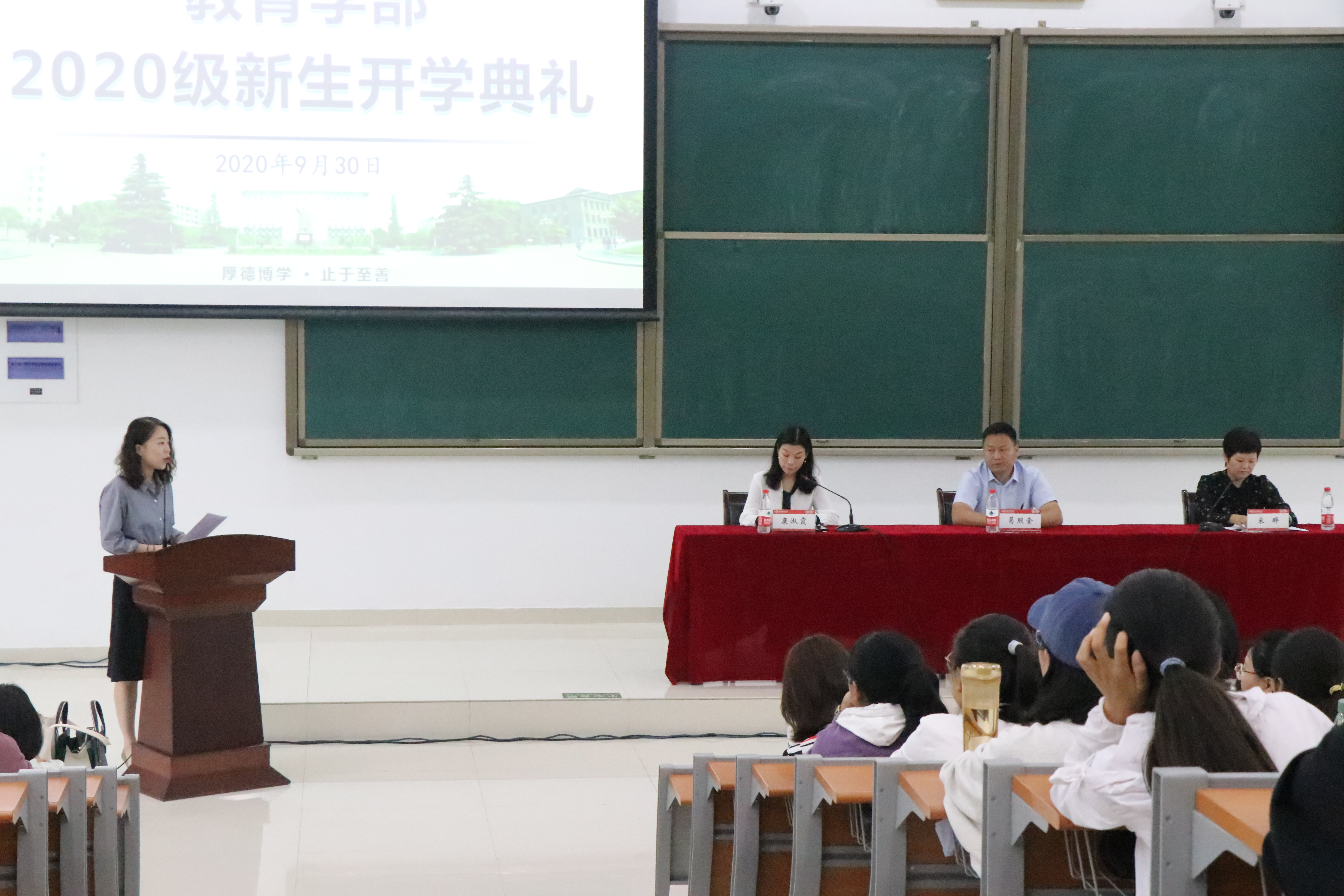 9月30日上午,教育学部在东区综合楼327教室举行2020级新生开学典礼暨入学教育大会。学部党委书记葛照金、部长宋晔,教师代表、各年级辅导员、2020级班主任及2020级全体新生参加典礼。