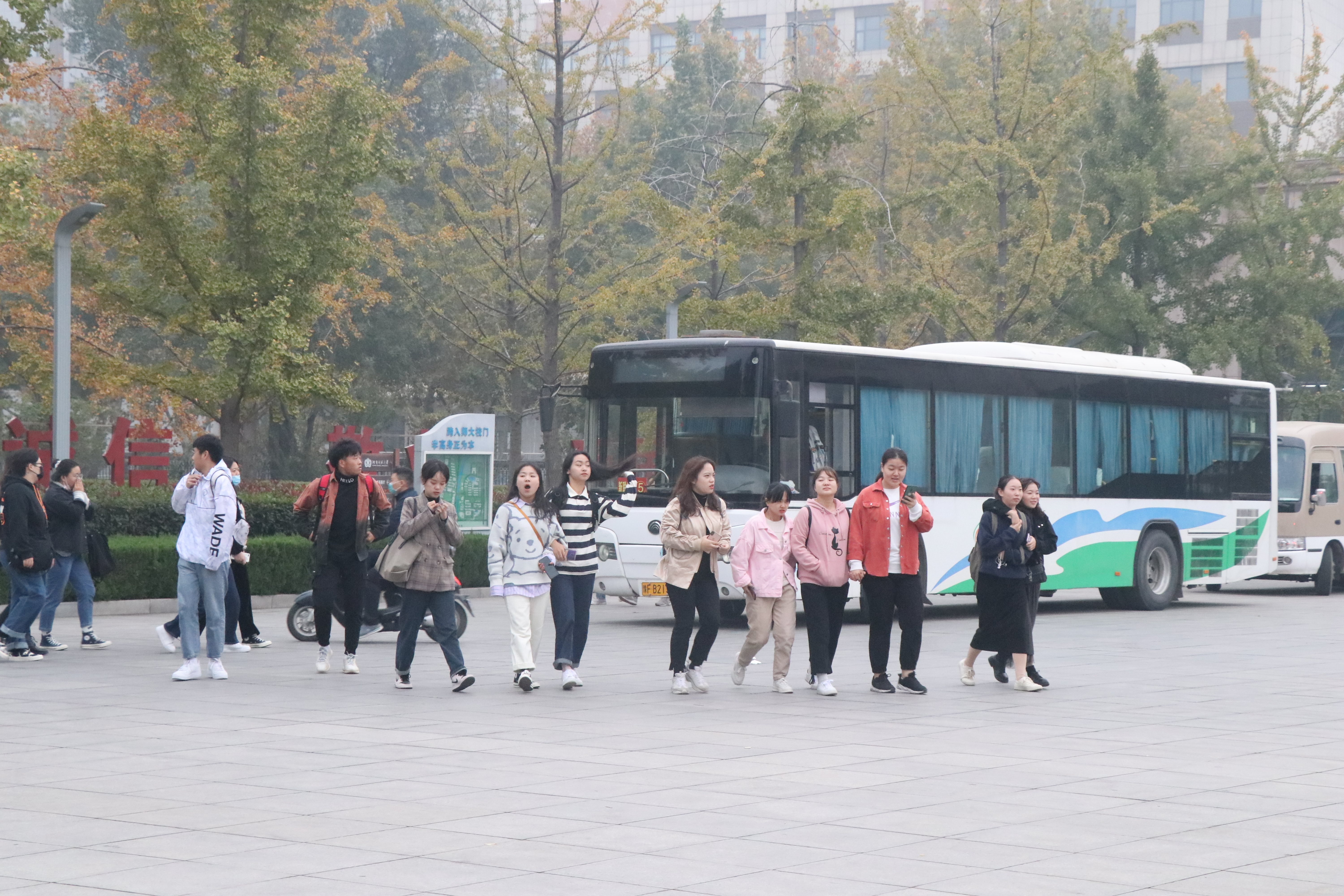 10月31日是全国教师资格证考试时间,一大早,教育学部近50名学生陆续到学校大门口,乘坐学部租用的专用车辆前往新乡县一中考点,车上学生干部正在认真清点人数,并不断提醒大家带好考试证件和用具,周到贴心地为同学们做好服务。