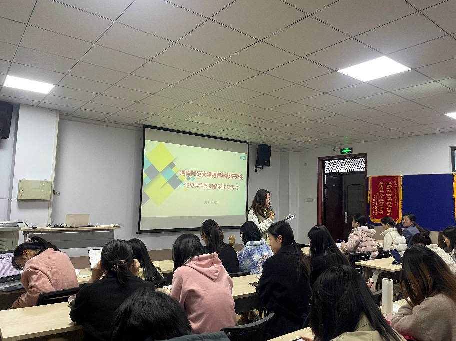 教育学部为促进研究生养成遵纪守法的行为习惯,教育引导学生树立文明意识,深入发挥典型案例警示威慑作用,从而进一步培育优良学风。2021年3月23日晚上19:30,教育学部2020级全体研究生在田家炳602教室开展了违纪典型案例警示教育主题学习活动。