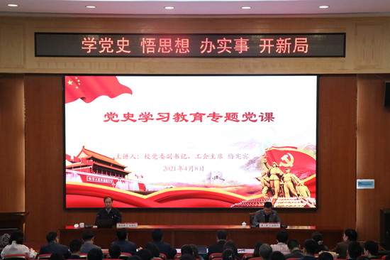 4月8日下午,校党委副书记、工会主席梅宪宾在求是中楼302报告厅为基层单位上党史学习教育专题党课。教师工作部、人事处、学术交流中心、心理健康教育中心以及教育学部党政班子、党员师生等共200余人参加学习。党课由教育学部党委书记陈勇主持。