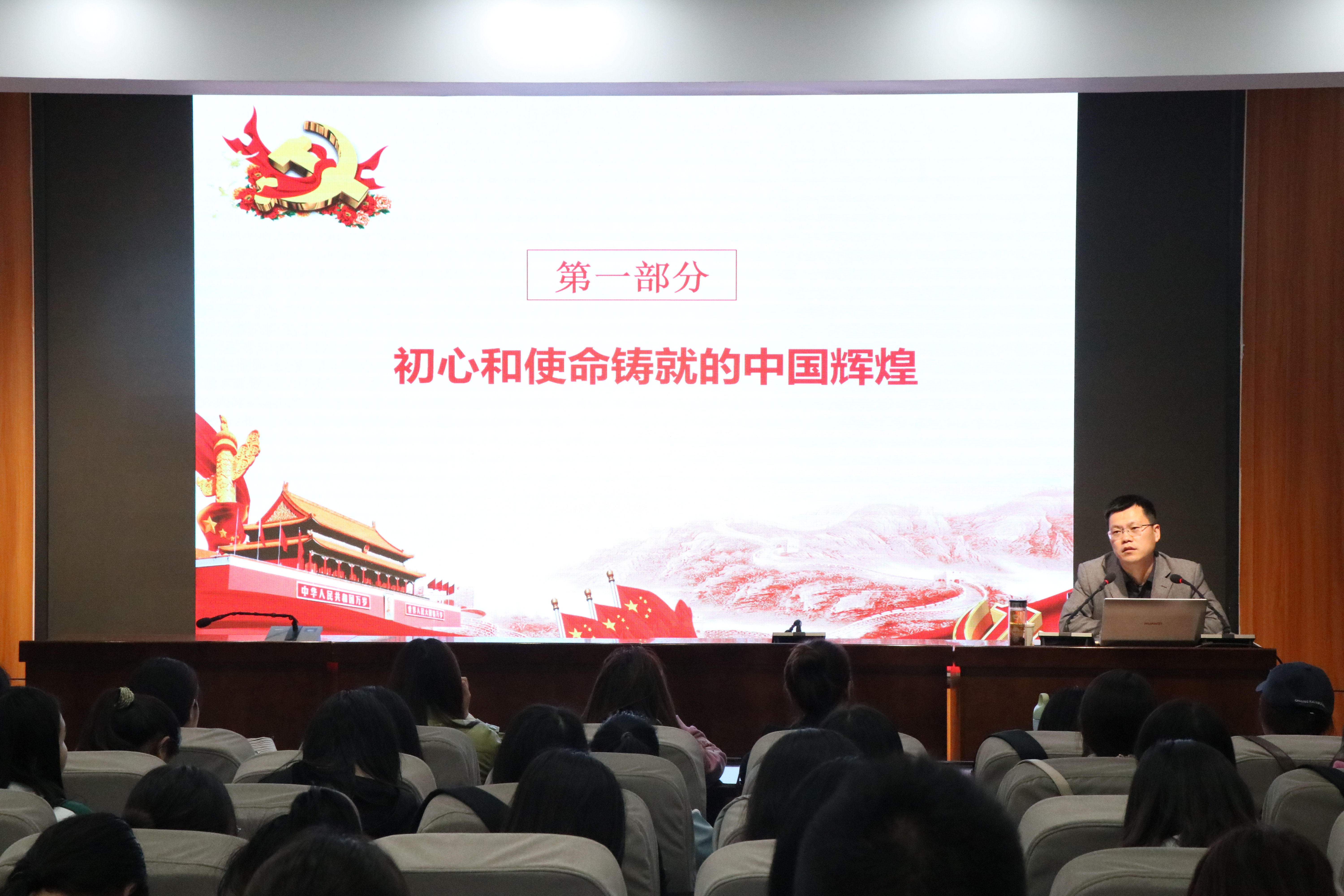 专题讲座以学习党史新中国史为主题,以初心和使命为主线,从铸就中国辉煌、感悟初心和使命、如何践行好初心使命三个方面展开,党课旨在带领大家感受今天中国的辉煌成就,解读辉煌成就,在党史新中国史中感悟党的初心和使命,从而深刻认识红色政权来之不易、新中国来之不易、中国特色社会主义来之不易,激发自己更好地践行初心和使命,传承好红色基因、担当好时代重任,积极为党旗增光添彩。陈勇强调要通过学习党史新中国史深刻领会共产党员的初心和使命,学出坚强党性、学出信仰担当、学出智慧力量。