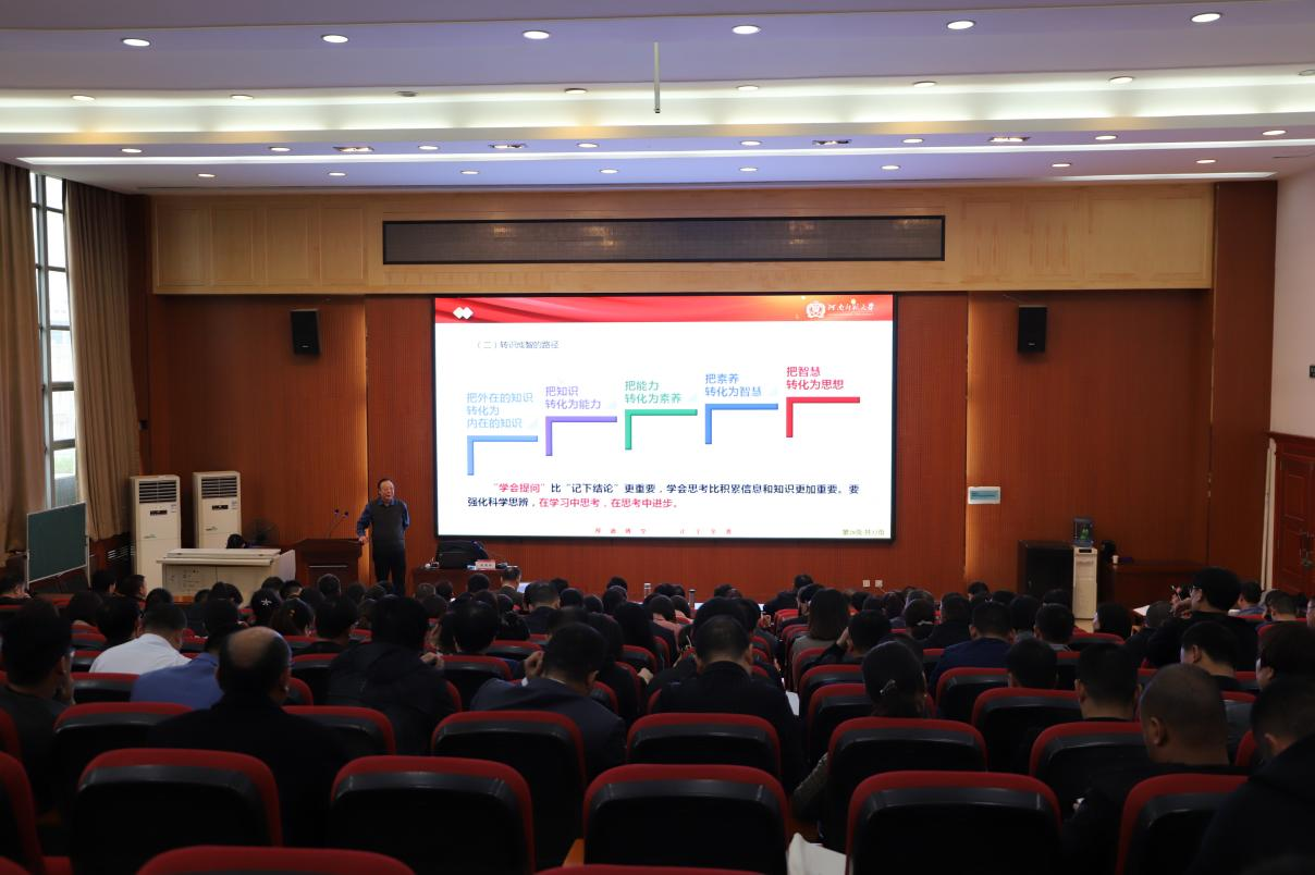 赵国祥书记以“学校的治校之道”为主题,深入剖析了学校治理中抓住政策、人力、科技、市场、时间与空间等资源的重要性,鼓励各级各类学校在资源转化中弥补发展的短板,促进学校教育事业的稳步提升。赵书记从知识与智慧的概念、特征等层面进行一一解读,对中国智慧在学校治理中的应用、转识成智的核心要素与具体路径等方面进行了细致分析。讲座内容深入浅出,立意高远,具有高度的针对性和引领示范性。