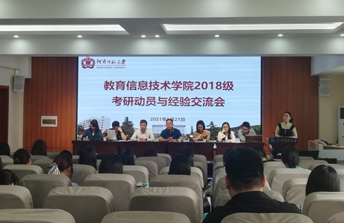 为了帮助2018级学生了解考研信息,尽快进入考研复习状态,5月21日下午,教育学部教育信息技术学院在田家炳教育书院819举行2018级考研动员与经验交流会,出席会议的有叶海智老师、梁存良老师、朱珂老师、梁云真老师、卜彩丽老师、孔维梁老师、邓敏杰老师,2017级教育技术学专业蒲金莹和袁书然,数字媒体专业张俊毅以及2018级教育技术学专业全体学生,会议由王春丽老师主持。
