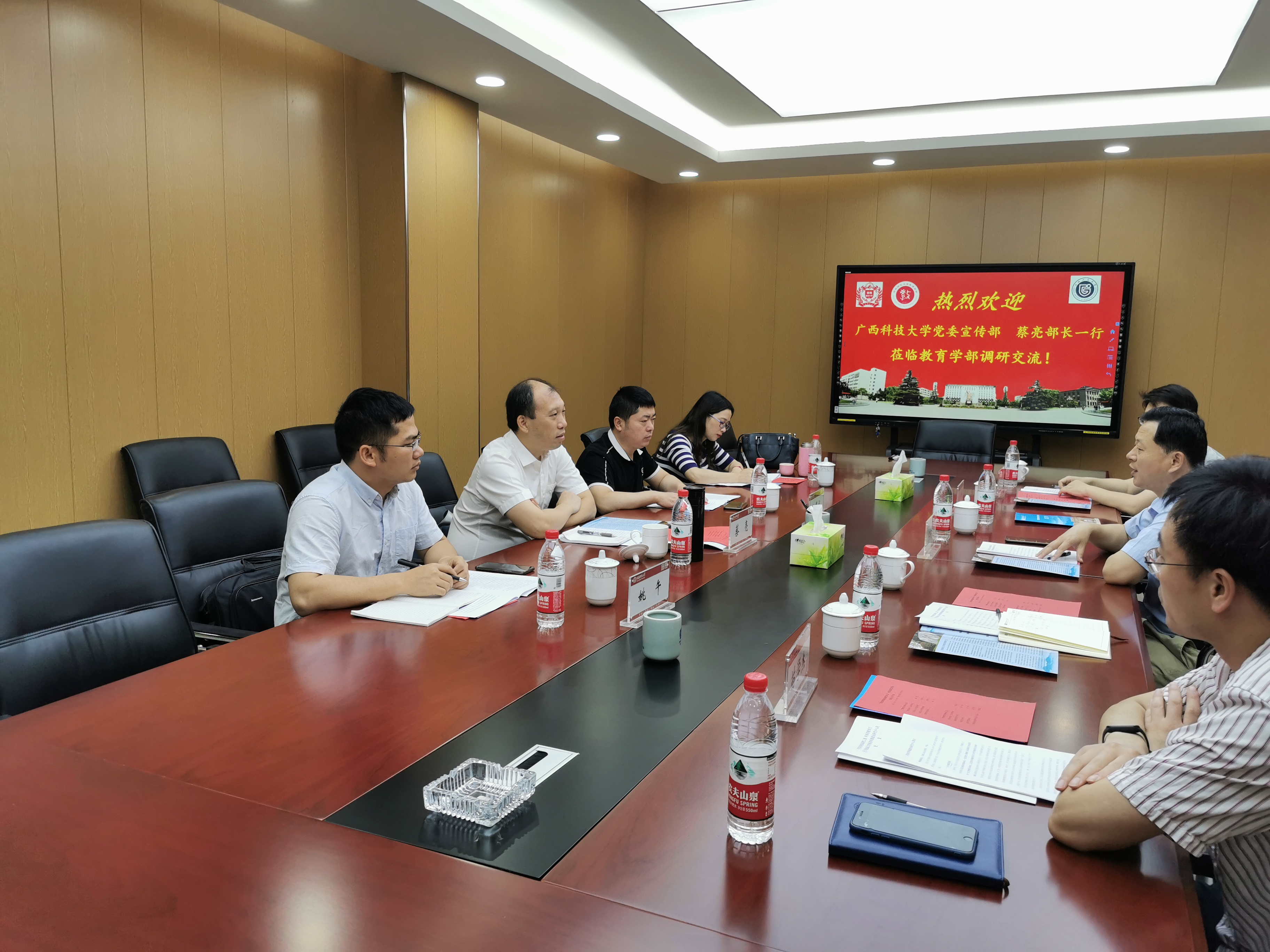 6月10日上午,广西科技大学党委常委、宣传部部长蔡亮一行4人莅临我校教育学部开展调研,并在田家炳教育书院801会议室就“师德建设研究中心”运行情况进行座谈交流。我校党委常委、宣传部部长马福运,教育学部部长宋晔以及河南省师德建设研究中心的部分团队成员参与座谈,会议由教育学部党委书记陈勇主持。