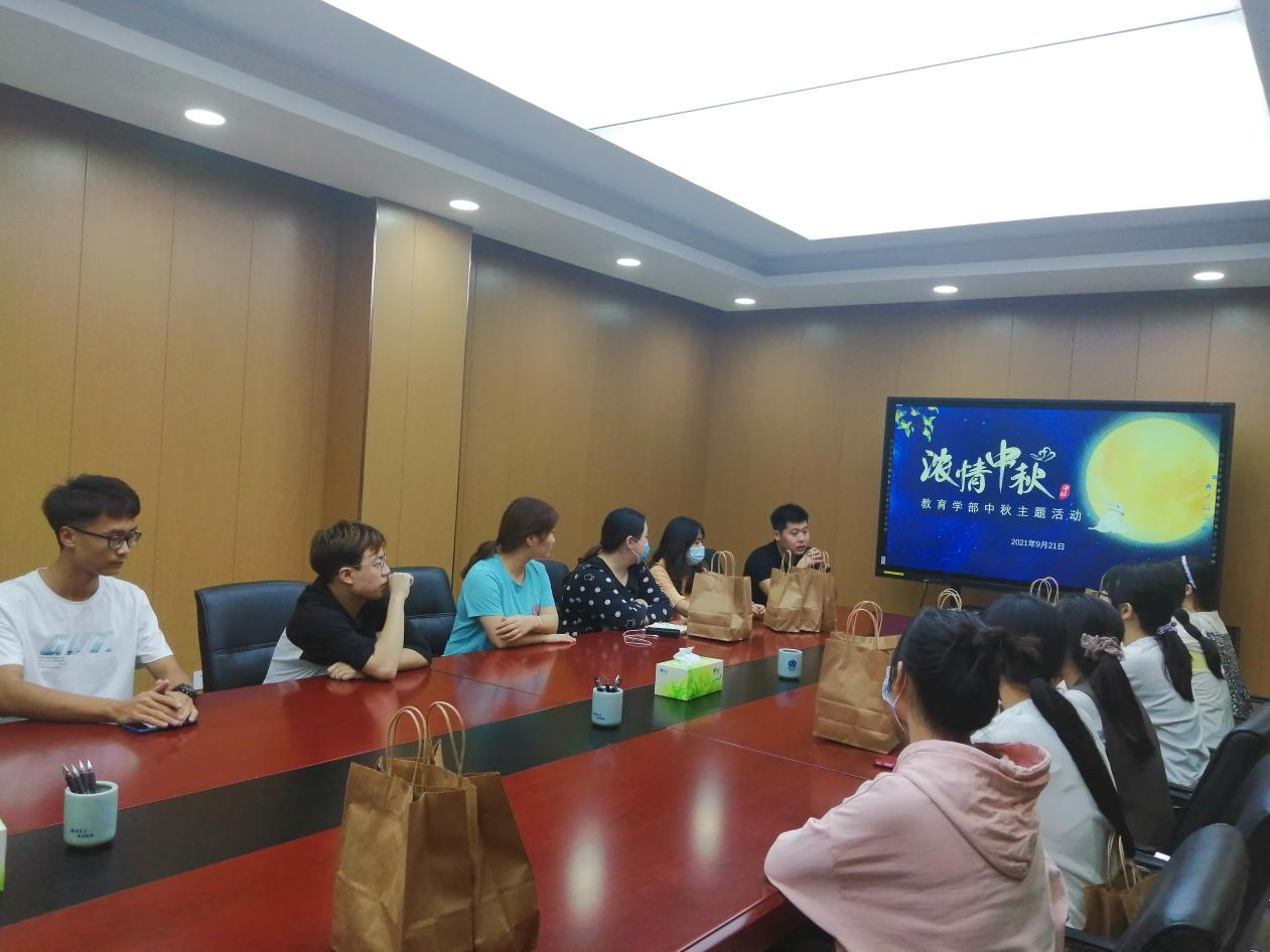 海上生明月,天涯共此时。“情满中秋,天涯此时”中秋节主题活动让今年的中秋节不再局限于“小家”的团圆,更盼到了疫情以来的大国平安。老师们与返校志愿者和留校学生共度中秋佳节,使学生们倍感温暖。同学们纷纷表示感谢学部领导、老师的关心,充分感受到教育学部这个大家庭的温暖和师长们的厚爱,大家一定不忘初心,不负芳华,以良好的成绩回报老师们的关心与帮助。