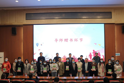 典礼仪式的最后,博士和硕士新生代表们依次登台,由学部领导和研读提升计划发起导师为新生代表赠书,勉励同学们心存志远,在研究生涯中刻苦研读、努力潜行。