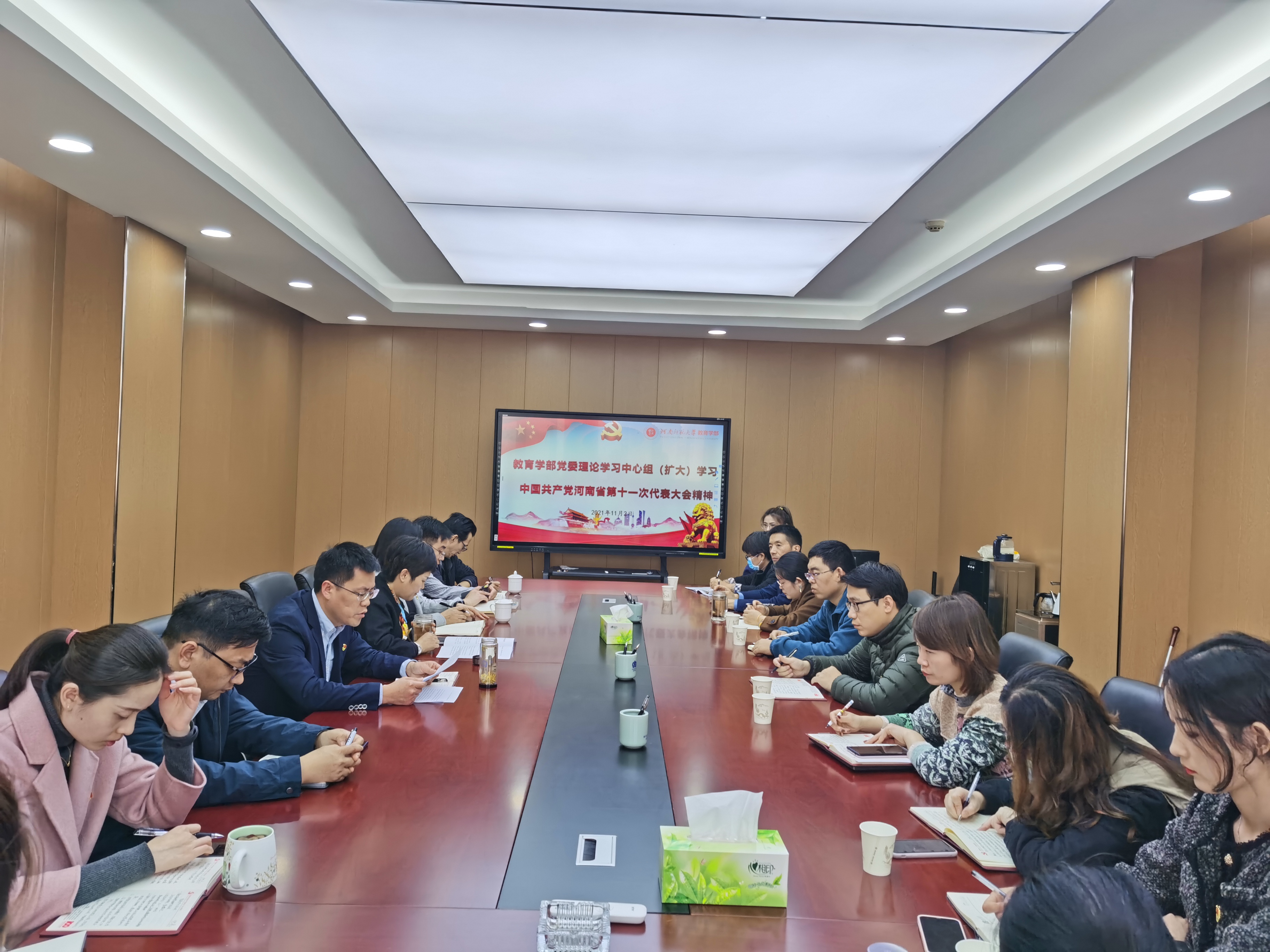 11月2日下午,教育学部党委理论学习中心组(扩大)在田家炳教育书院801会议室集中学习中国共产党河南省第十一次代表大会精神。学部党政领导班子、全体支部书记、各学院负责人参加会议。会议由教育学部党委书记陈勇主持。