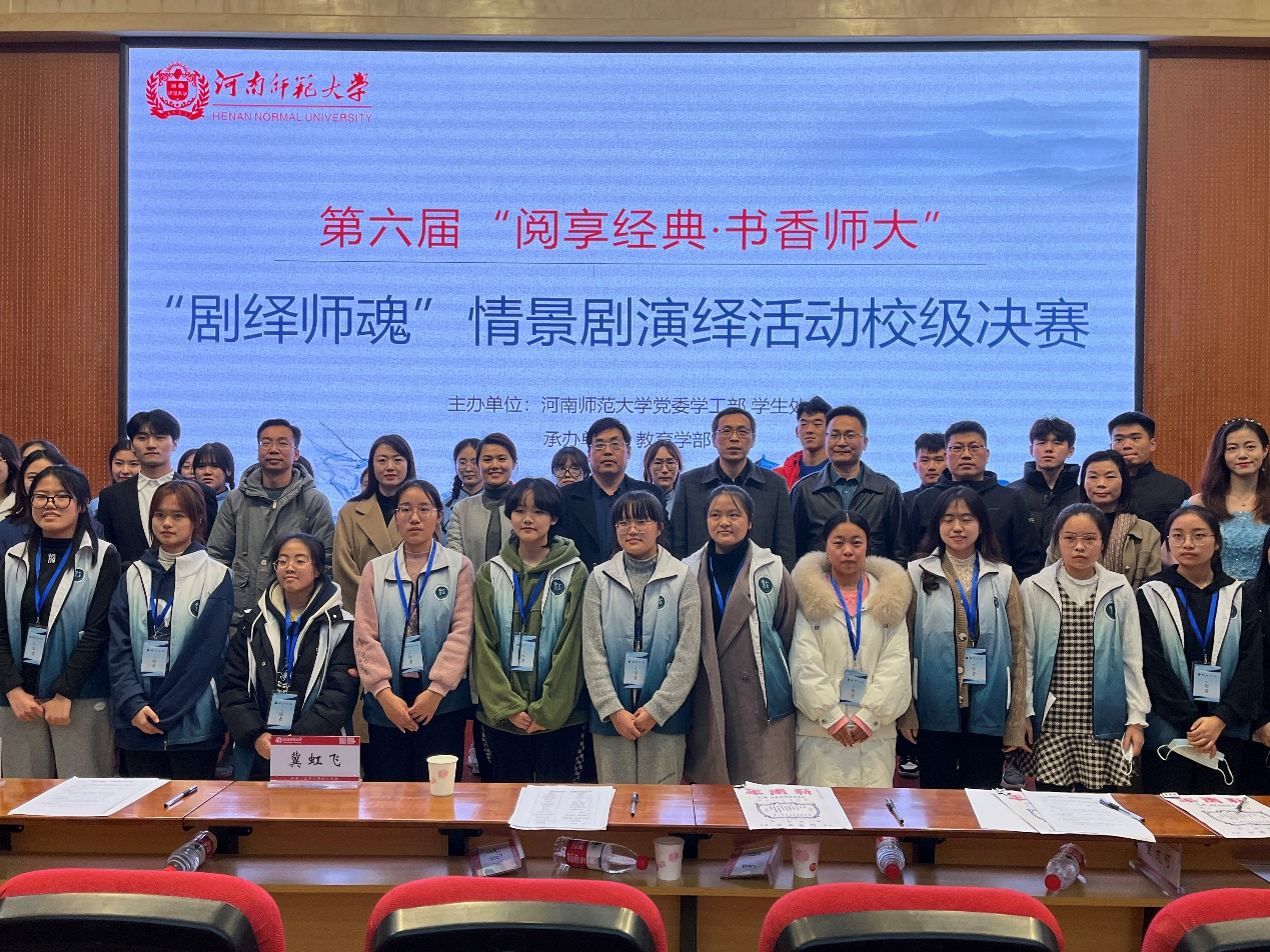 12月11日下午,河南师范大学校党委学工部、学生处主办,教育学部承办的第六届“阅享经典·书香师大”之“剧绎师魂”情景剧演绎活动校级决赛在求是中楼302教室成功举办。
