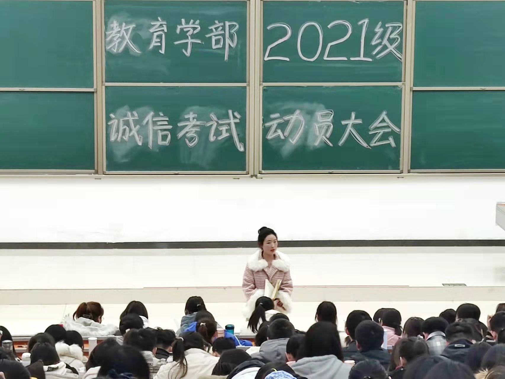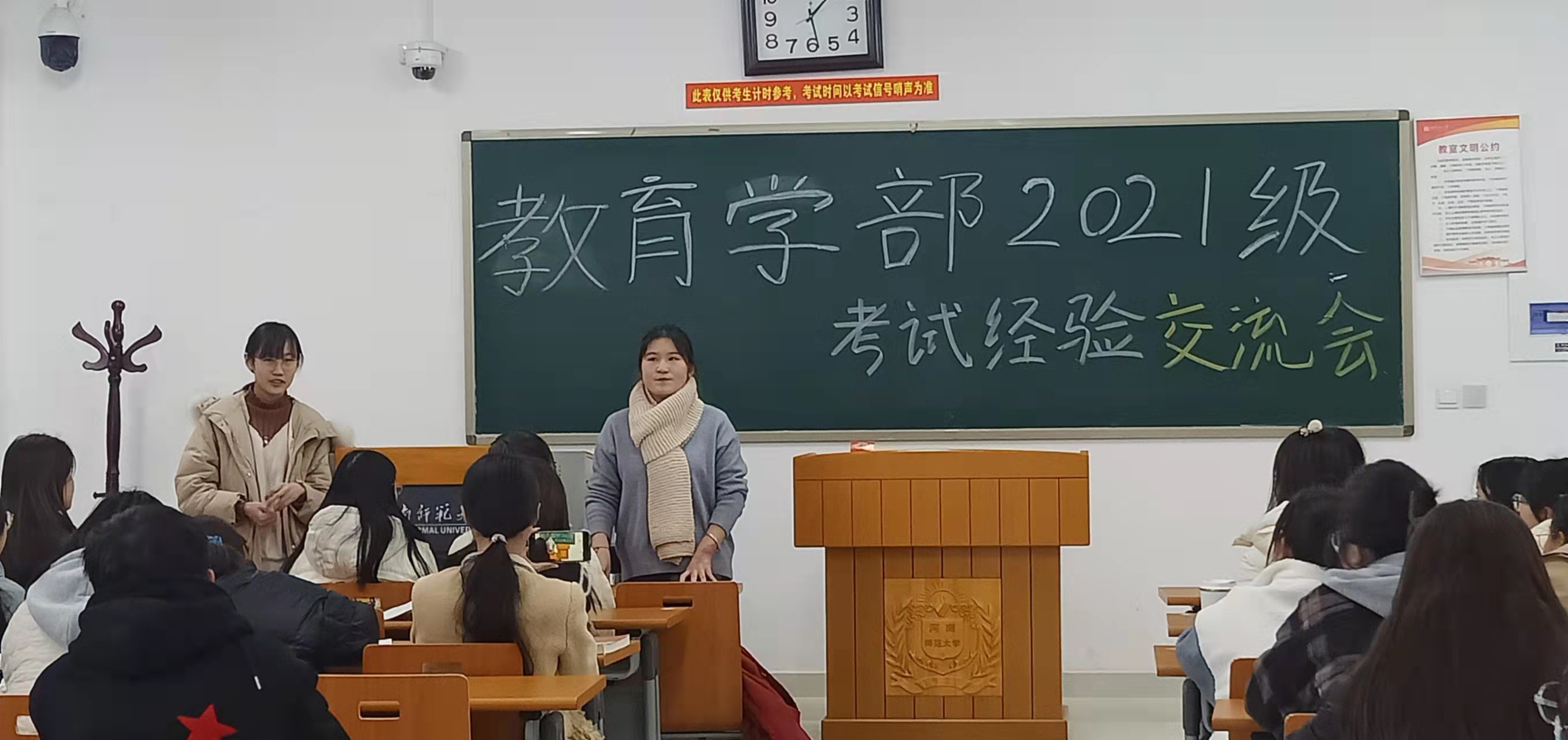为帮助2021级学生准备期末考试,增强诚信考试意识,12月16日晚上,教育学部在东综127开展2021级学生诚信考试动员大会,12月17日至20日,在东综105、106、107分专业进行期末考试经验交流会。2021级辅导员陈赞赞、2020级学生代表以及2021级全体学生参加本次活动。