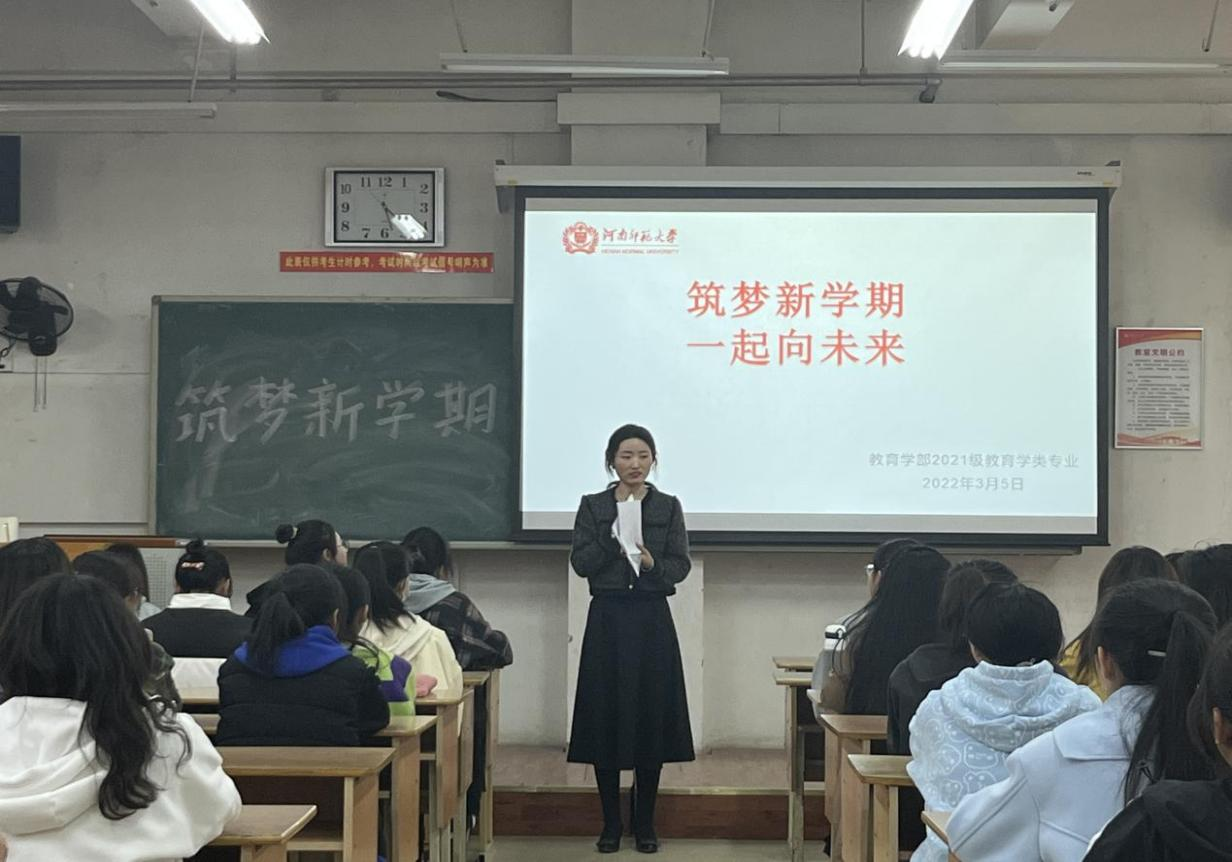 律回春晖渐,奋力开新篇。为引导学生进一步明确自身的学习目标和规划,拥抱崭新的学期,3月11日晚,教育学部2018级全体本科生于东区文昌楼102教室召开“筑梦新学期,一起向未来”主题年级会,会议由2018级辅导员石晓倩主持,2018级全体同学参与本次会议。