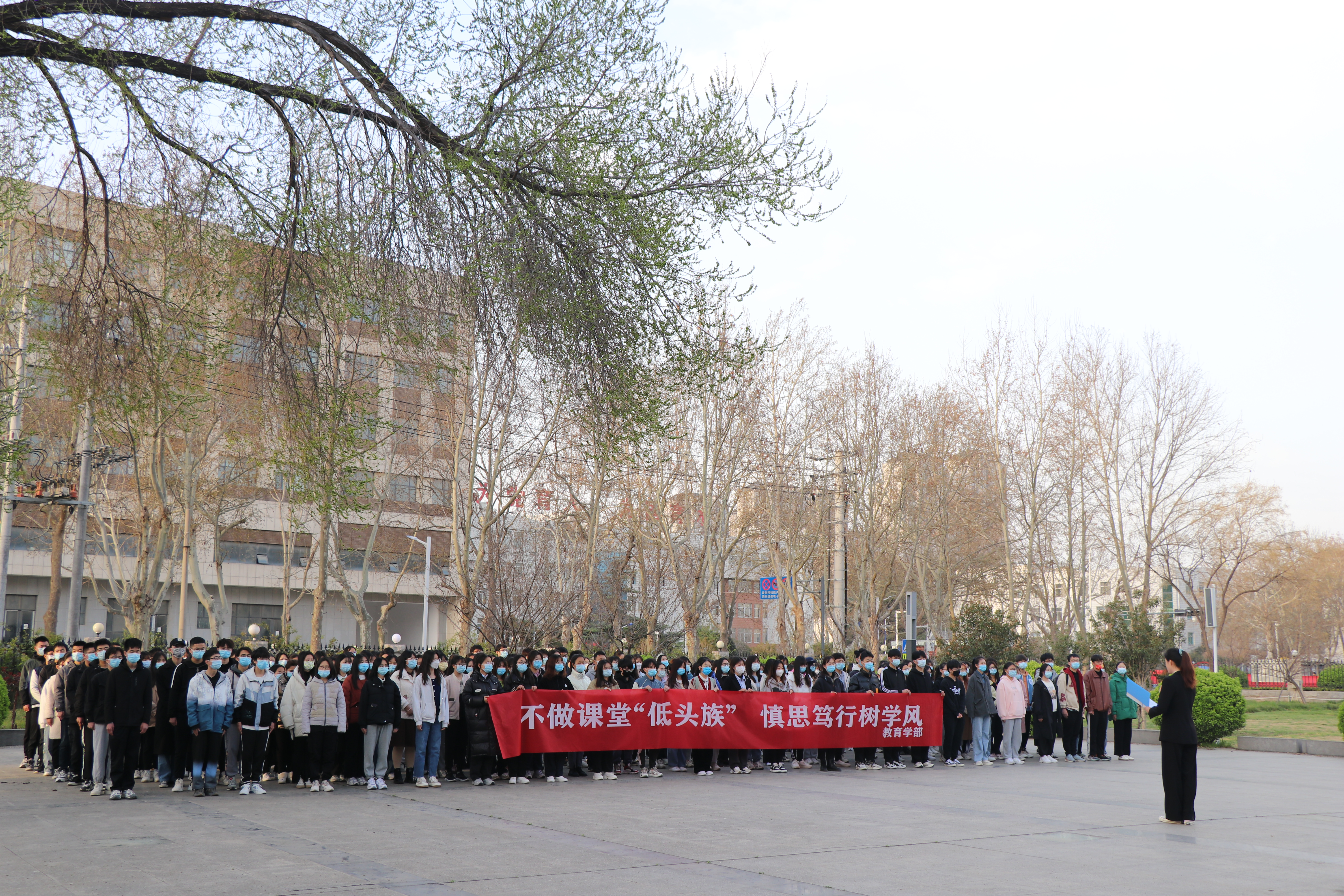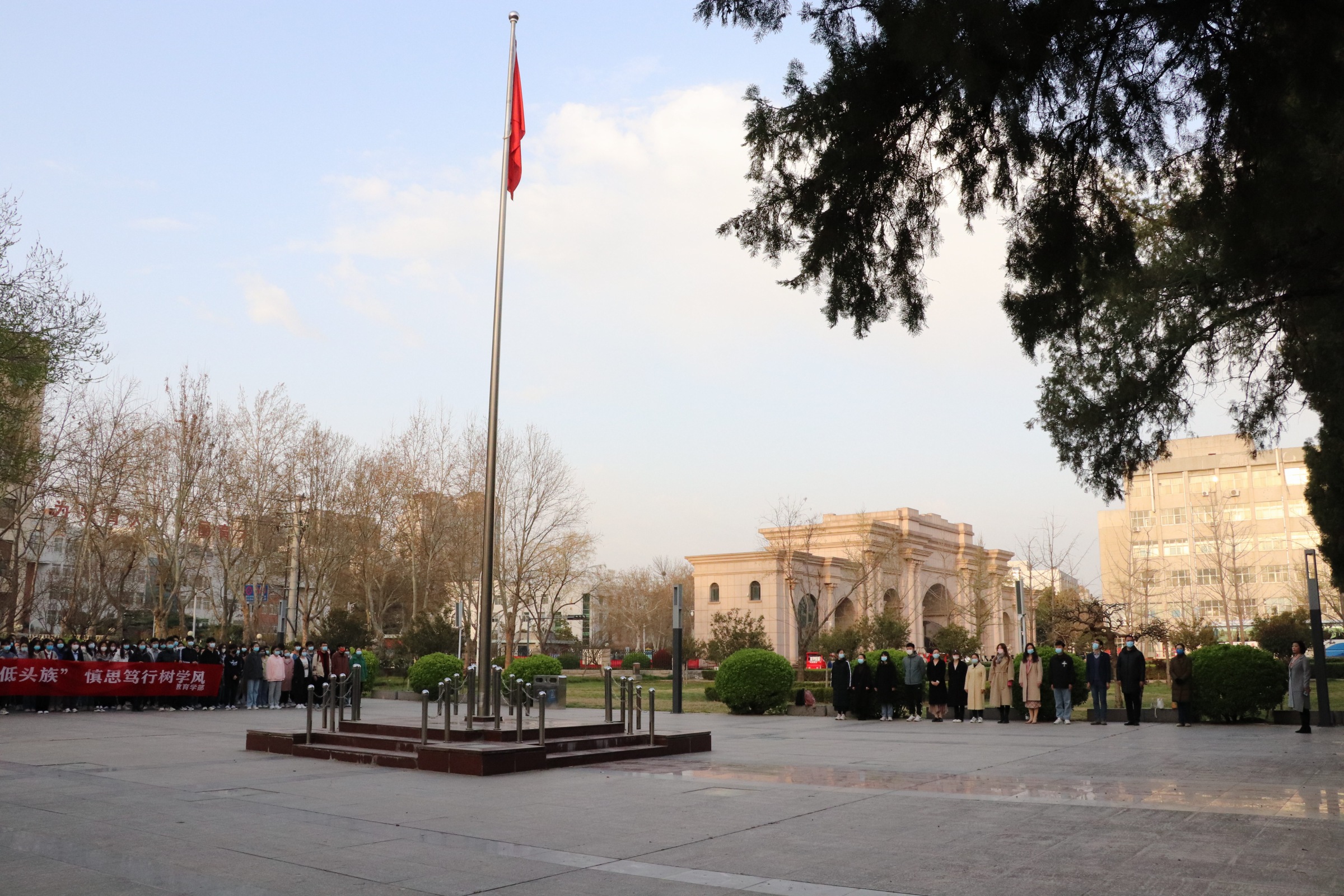 3月28日,教育学部于国旗广场隆重举行升国旗仪式暨无手机课堂倡议活动。学生处负责老师、教育学部全体专兼职辅导员及2020级全体学生参加升旗仪式。仪式由教育学部党委副书记康淑霞主持。