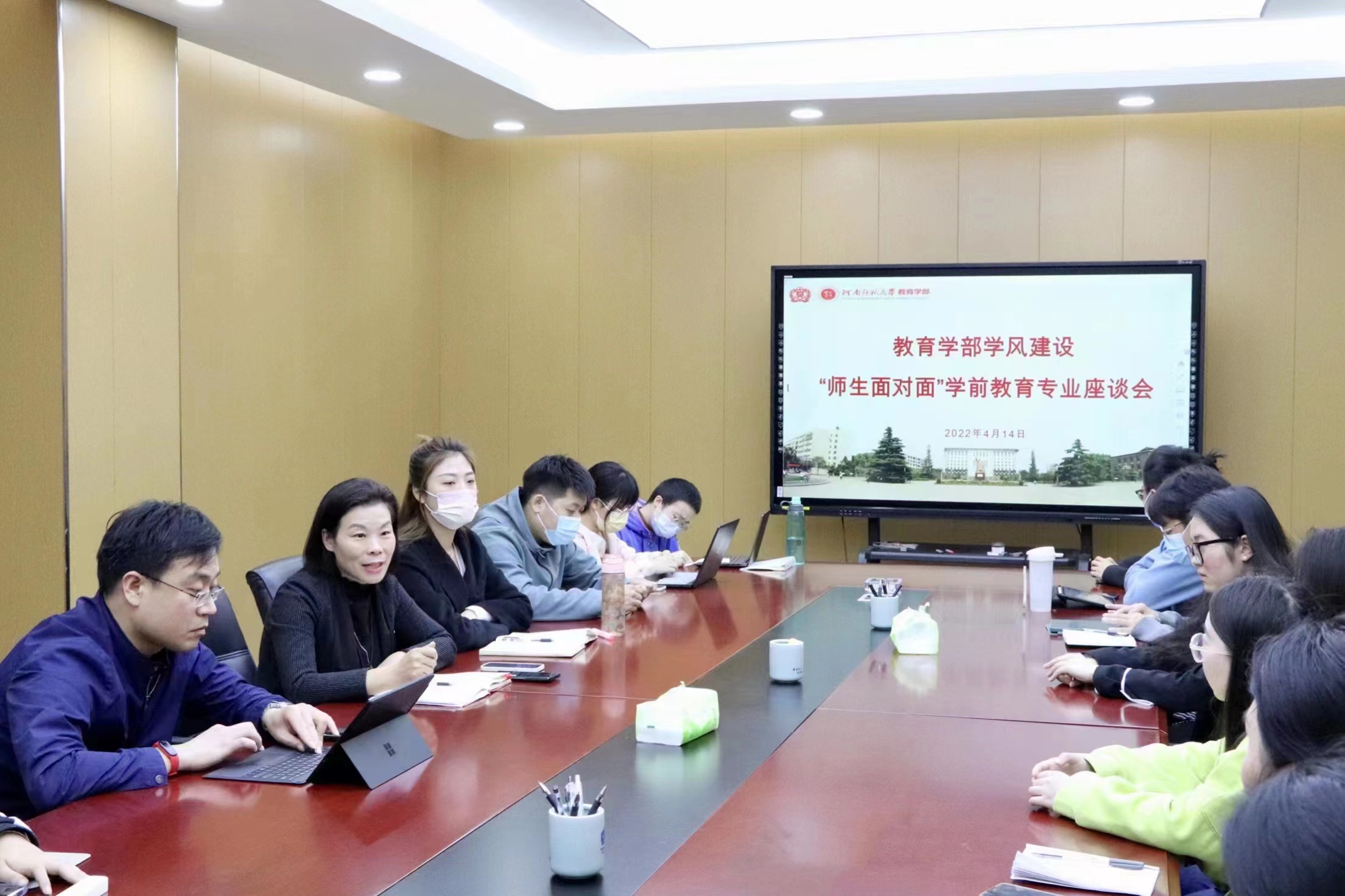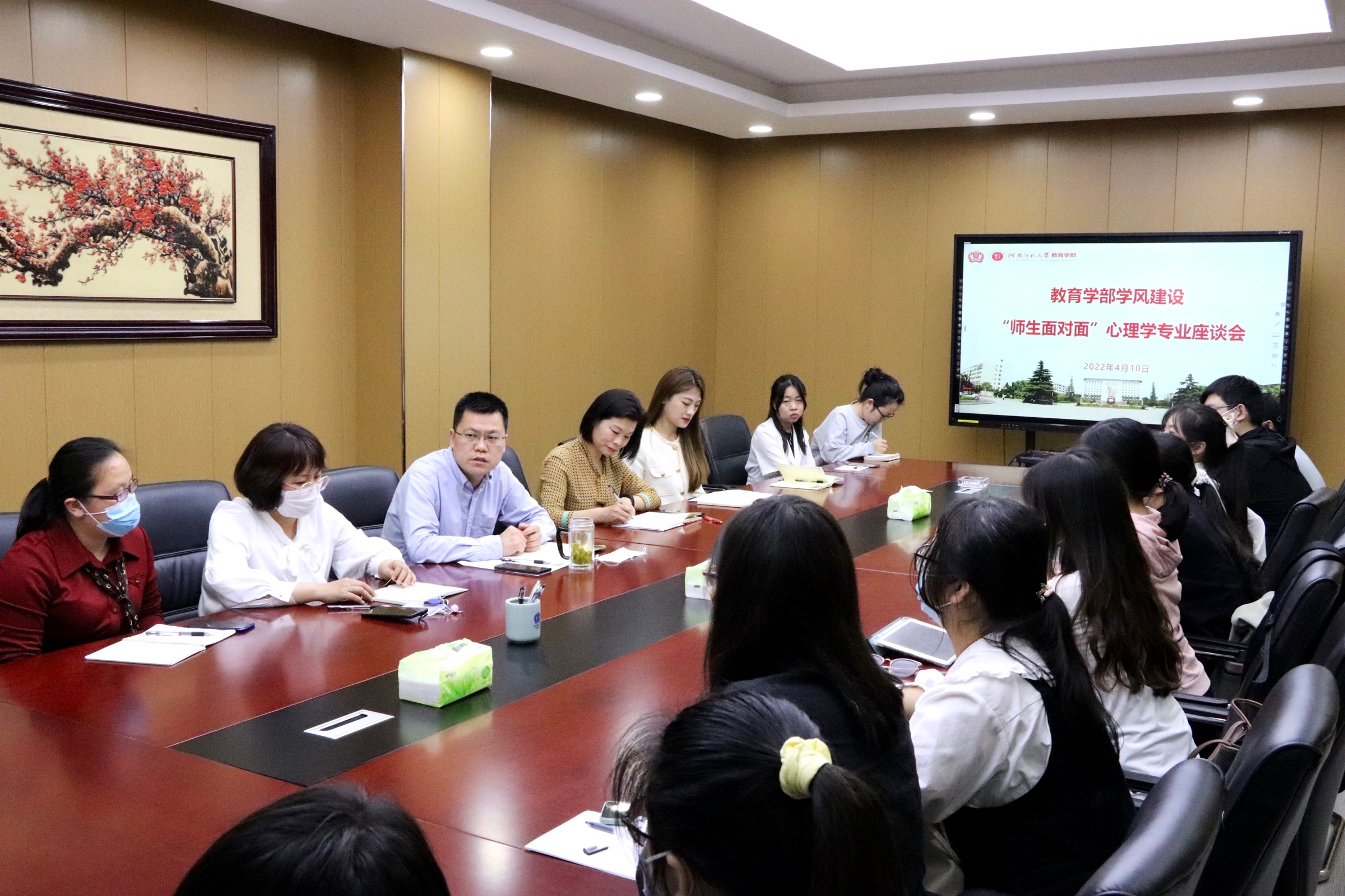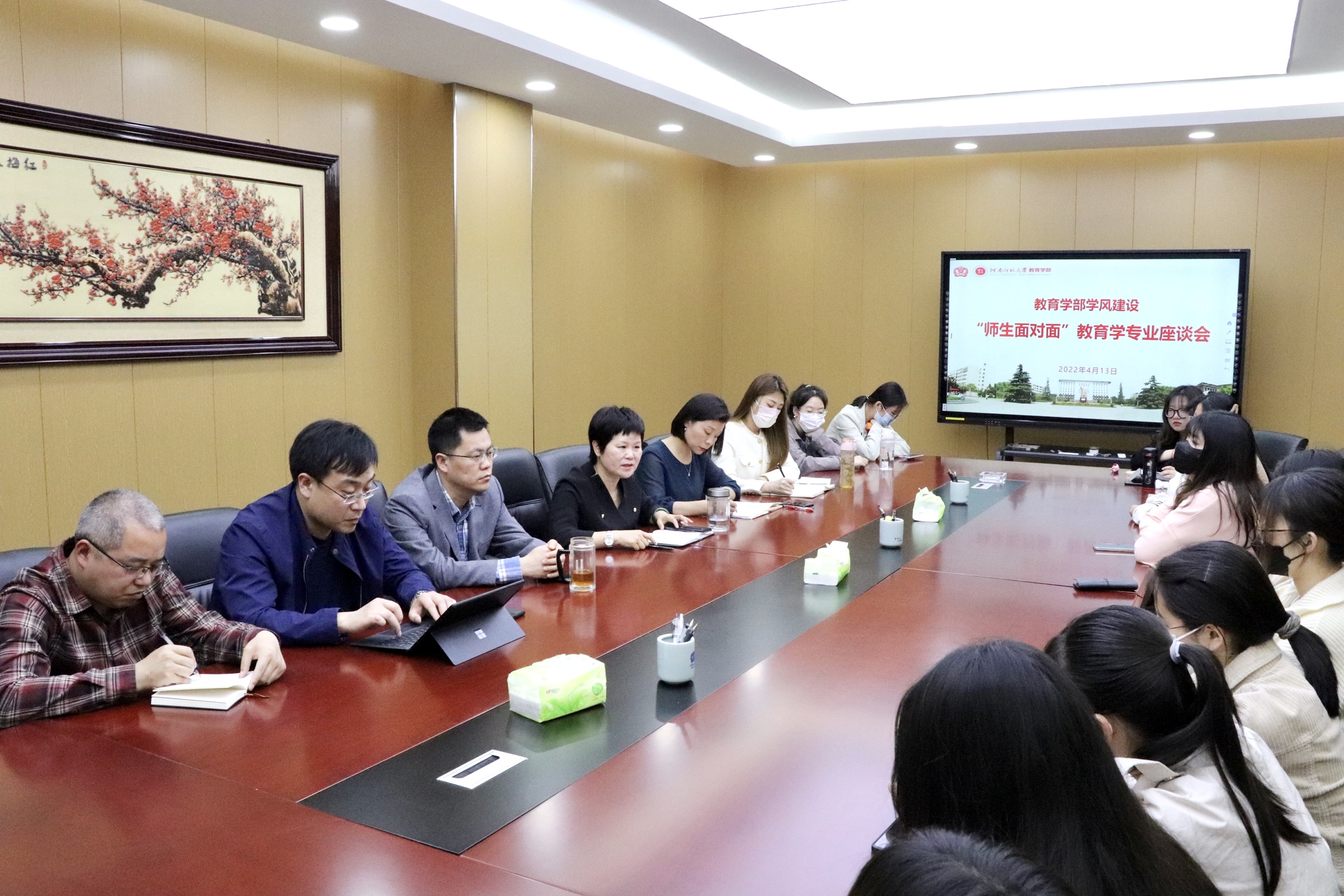 为落实立德树人根本任务,进一步提高人才培养质量,有效推进学部学风建设落实落细,4月10日至15日,教育学部以学校“争创双一流 迈向新百年”深化教育改革大讨论为契机,先后组织五场学风建设“师生面对面”分专业学生座谈会,学部领导班子、各学院院长、辅导员、班主任分别参加相关专业的座谈会。