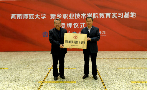 4月18日,河南师范大学教育实习基地授牌仪式在新乡职业技术学院举行。我校教务处聂国兴处长、崔振成副处长,教育学部党委书记陈勇、部长宋晔、副书记康淑霞,新乡职业技术学院党委书记张林、副校长崔风华以及相关职能部门负责人以及我校教育学部参加此次教育实习工作的87名学生参加授牌仪式。