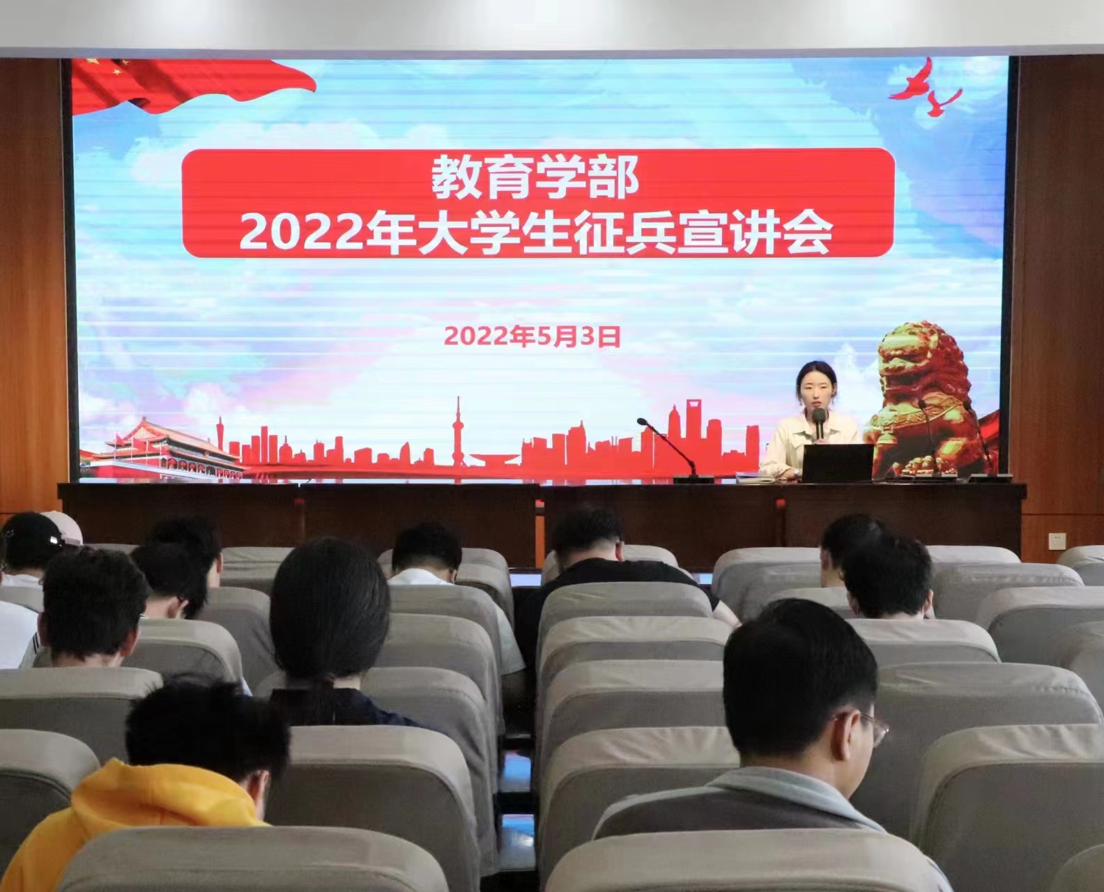 为加强征兵政策宣讲,鼓励学生积极参军,5月3日中午,教育学部在田家炳819举行大学生征兵宣讲会。各年级辅导员、学生代表参加。宣讲会由学部征兵专员、2021级辅导员陈赞赞主持。