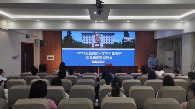 为总结2022届本科毕业生考研经验,进一步加强2023届考研动员及备考指导,4月27日上午,教育学部教育信息技术学院在田家炳819召开考研动员暨经验交流会。学部领导、专业任课教师、2018级考研优秀学生代表和2019级全体学生参与本次会议。会议采取线上线下混合形式,由2019级班主任王国华主持。