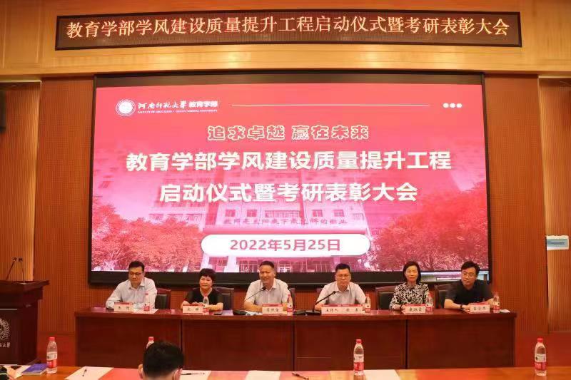 5月25日下午,教育学部“追求卓越 赢在未来”学风建设质量提升工程启动仪式暨考研表彰大会在求是中楼302会议室隆重召开。校党委学工部部长、学生处处长葛照金,教育学部党委书记陈勇,部长宋晔,党委副书记康淑霞,副部长朱珂、苗学杰出席会议,各学院本科专业负责人、年级辅导员、班主任及学生代表参加主会场会议,各年级学生同步参加线上会议。会议由陈勇主持。