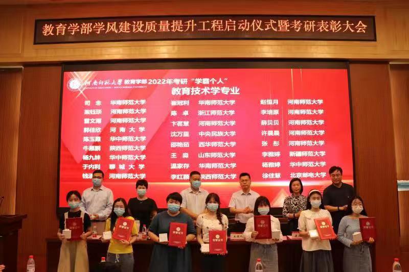 会上,康淑霞宣读了《教育学部“追求卓越 赢在未来”学风建设质量提升工程实施方案》,朱珂宣读了《教育学部关于表彰2022年考研“学霸个人”的决定》。本硕均在教育学部就读并成功考取华中师范大学博士研究生的2019级研究生张莹同学、2019级本科生李昕蓓同学分别代表受表彰学生和低年级学生作了发言。