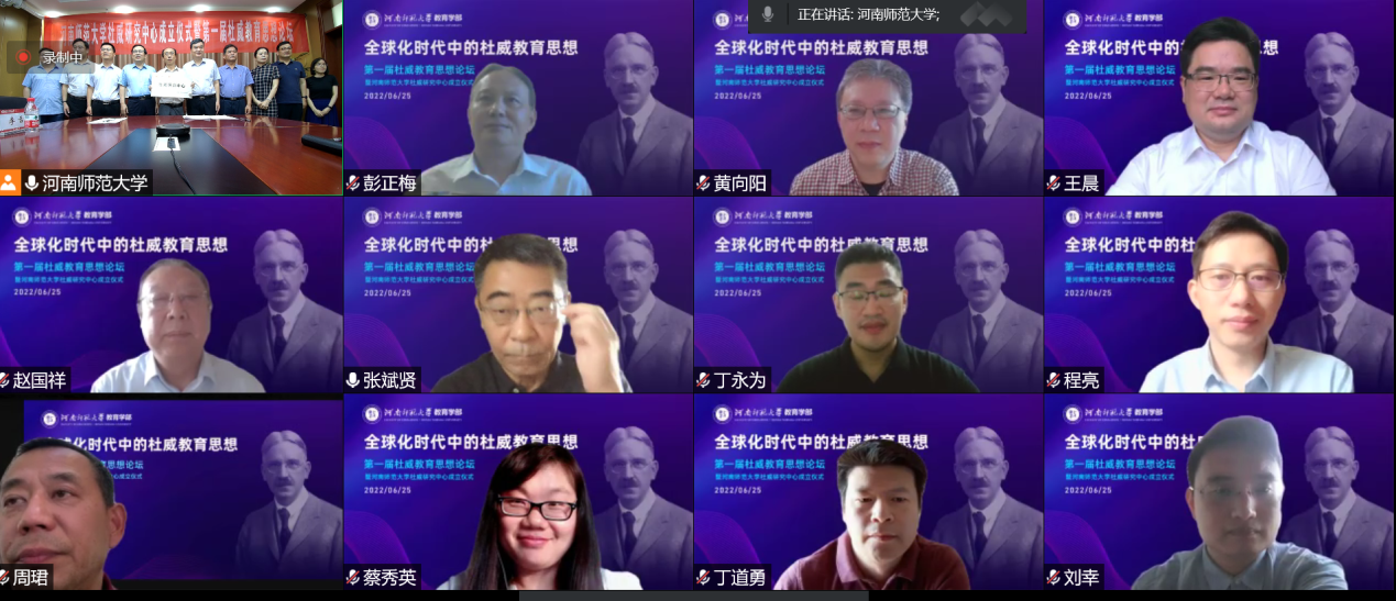 2022年6月25日,河南师范大学杜威研究中心成立仪式暨第一届杜威教育思想论坛在田家炳教育书院801会议室隆重举行。校党委常委、副校长李雪山致开幕辞,国内外相关学者、师生1600余人通过网络云端参与此次盛会,杜威研究中心成立仪式由校社科处处长李永贤主持。